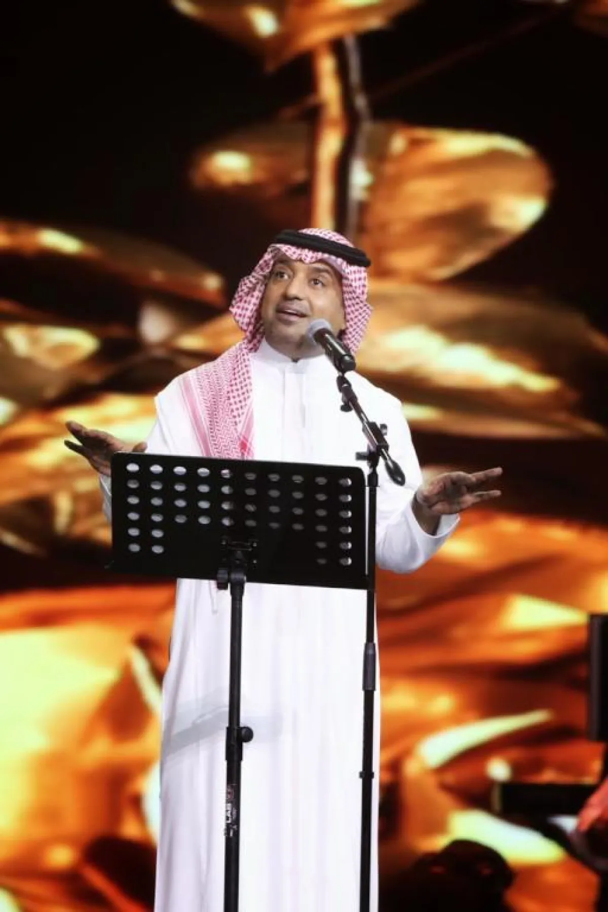 وتغنَّى راشد بالأغنية الحزينة والعاطفية والسريعة، لتشتعل أجواء الحفلة، وأطرب راشد الحضورَ بثلاثة أعمال وطنية؛ أولها الأغنية الوطنية التي طرحها قبل أيام بعنوان "لك الغلا"، وأغنية "يا محمد"، ليختم بأغنية "عاش سلمان".