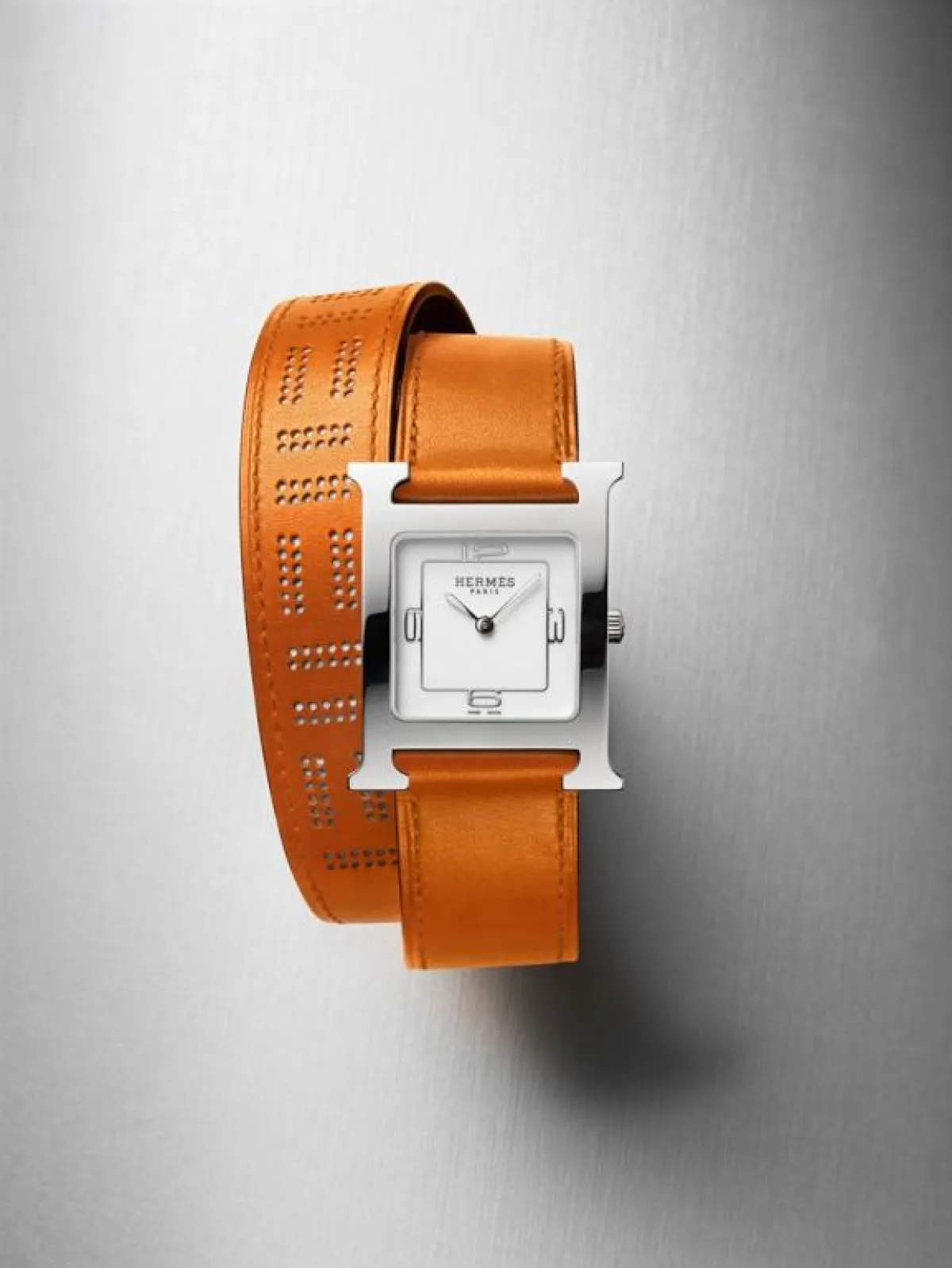 أحد مقتنيات وإبداعات Hermès الفريدة بالحزام الجلدي المزدوج والذي تم تصميمه عن طريق المصمم Martin Margiela في أول عرض أزياء له في Hermès عام 1998 والذي يتلاءم بسلاسة مع العلبة ويبرز شكله من رسمه.