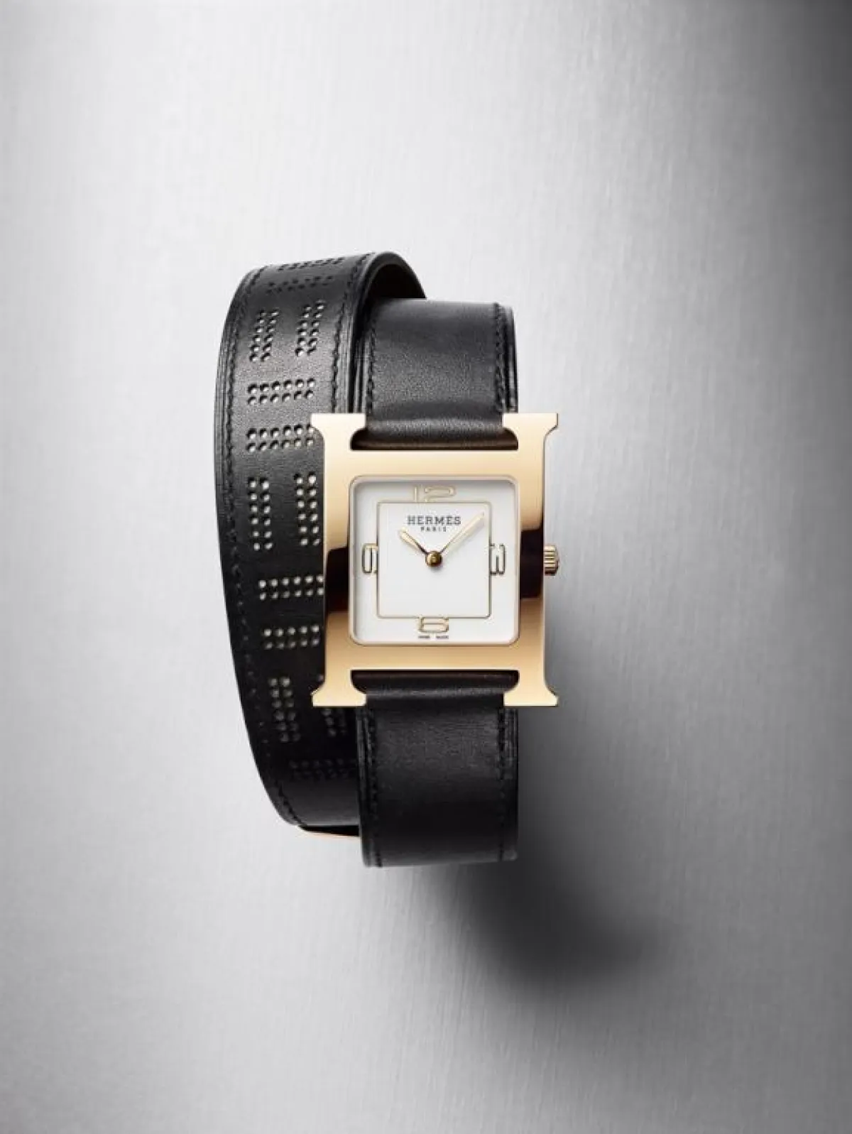 تتميز هذه الساعة بطابع زوجي ثنائي بين الشكل النهائي الكلاسيكي بين عروات العلبة وبين نمط Hالمثقب الهندسي الدقيق على اللفة الثانية حول