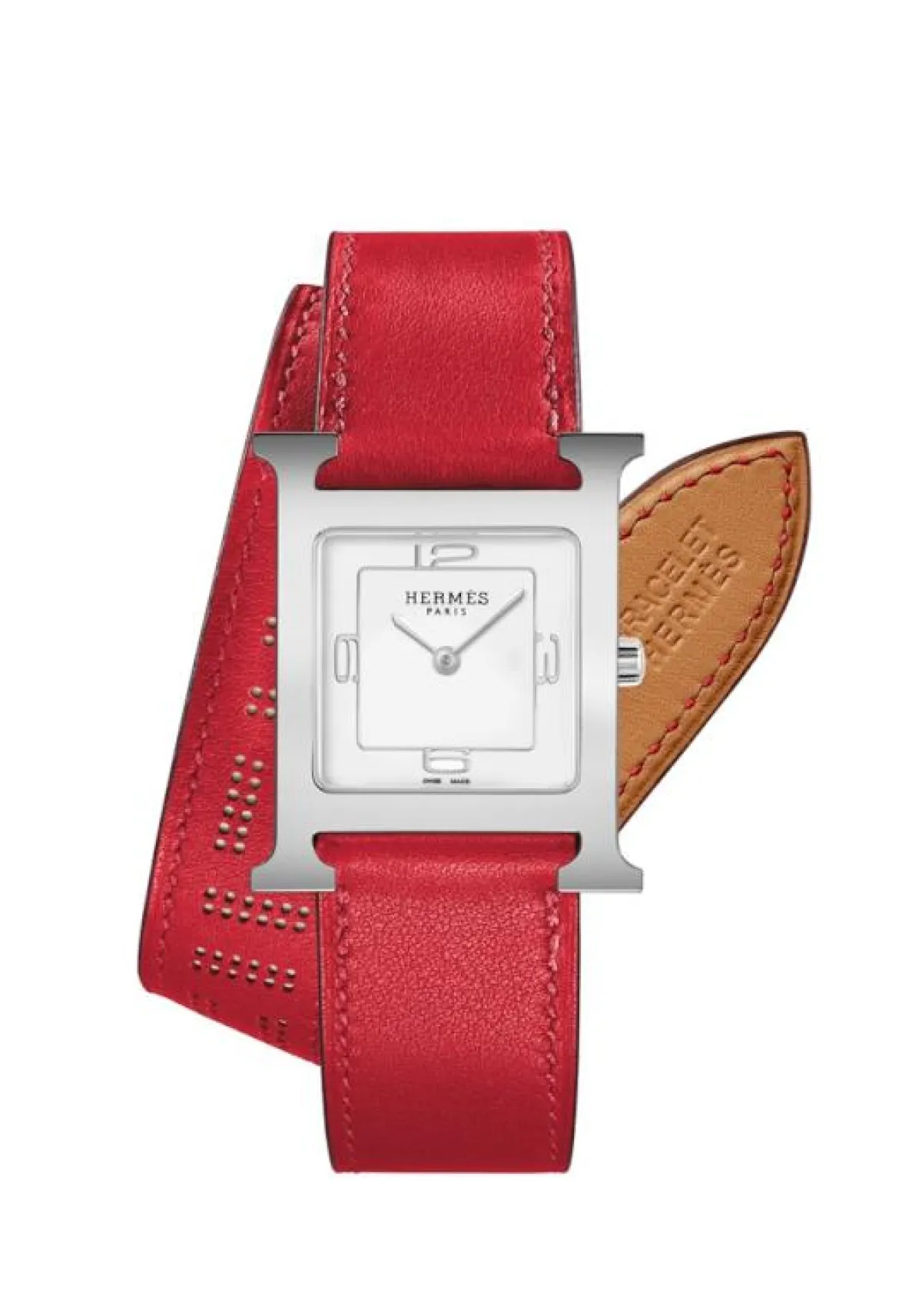 ساعة Heure H المزينة بحزام مزدوج به زخترف ذات ثقوب جميلة ، مشمشية اللون أو الداكنة القرمزية السوداء او لون Etoupe.