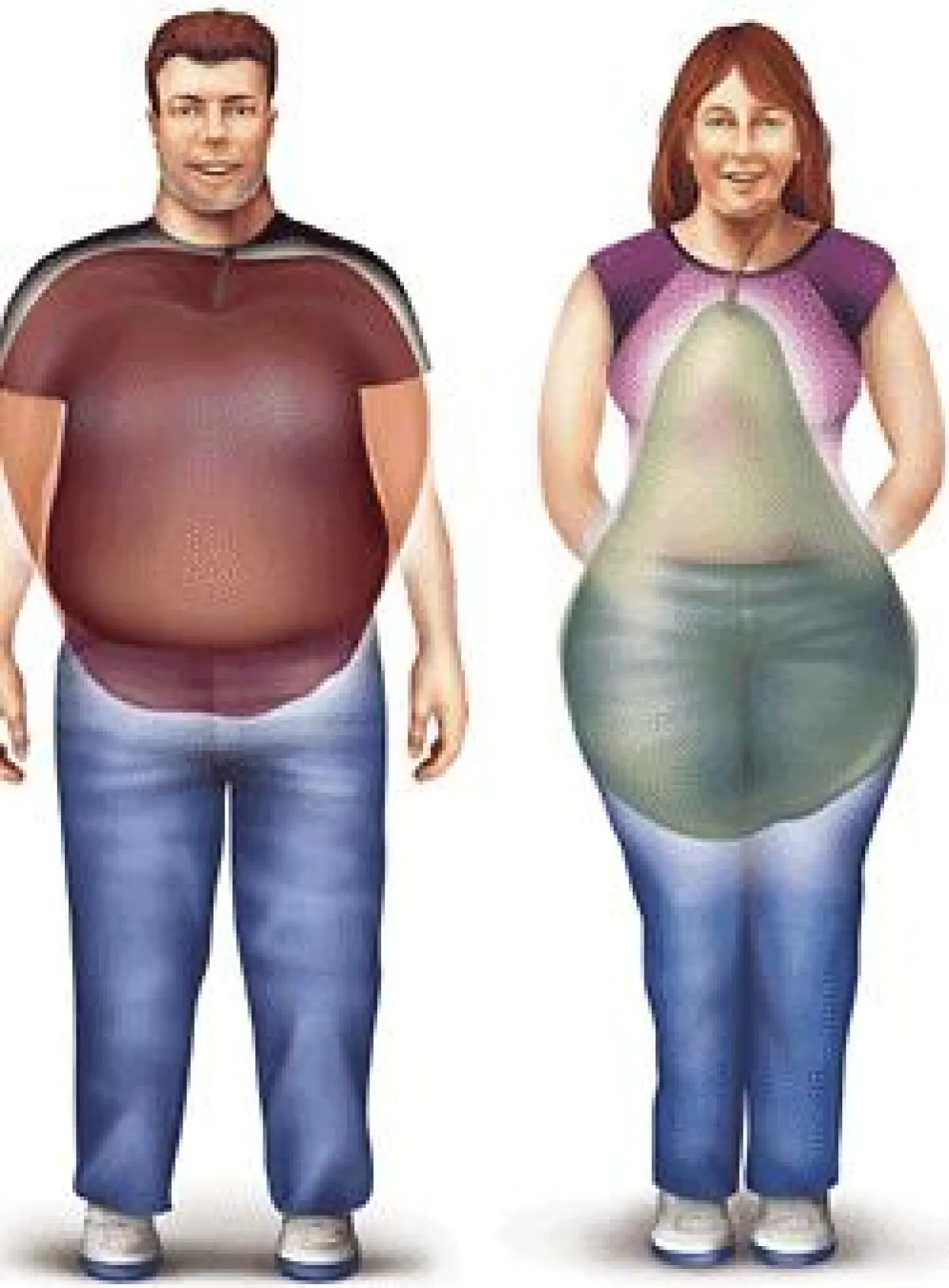 وقاموا بترتيب النساء بحسب شكل أجسامهنّ: شكل التفاحة أو الإجاصة، وتبين أنّ النسبة الأكبر من ذوات أجسام "التفاحة"، أكثر عرضة للإصابة بأمراض القلب والسكتة الدماغية، من النساء اللواتي لديهنّ دهون أقل حول وسطهن.
