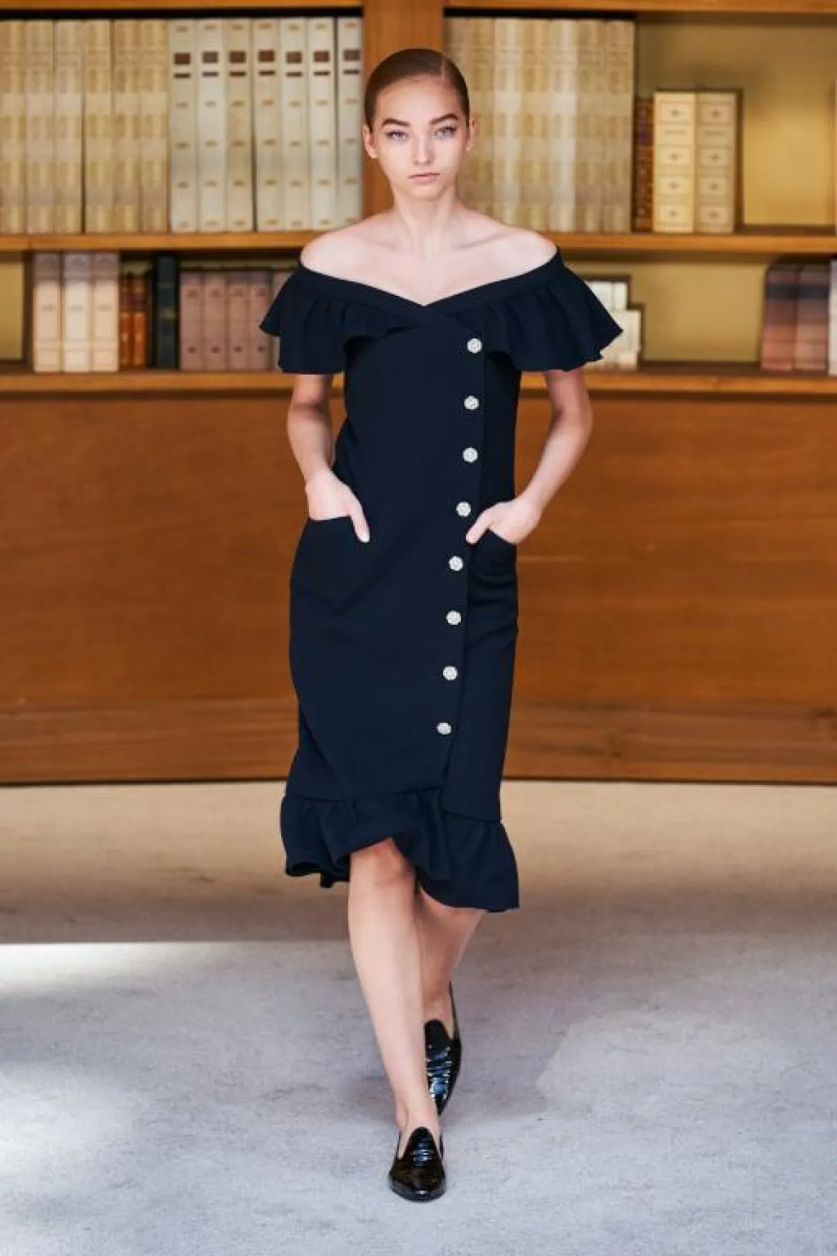 في أجواء مميزة مستوحاة من مكتبة كارل لاغيرفليد الخاصة، أقامت دار شانيل عرضها الخاص بالأزياء الراقية لموسم خريف وشتاء 2019 – 2020 في القصر الكبير ضمن أسبوع الموضة في باريس، وأتى العرض موقعاً بأنامل فيرجيني فيارد التي خلفت لاغيرفيلد.