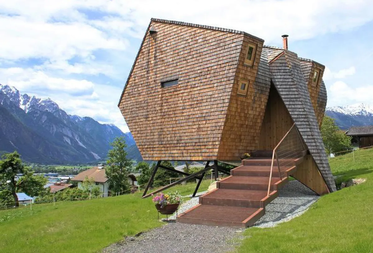يعد هذا التصميم غريباً فعلاً، فهو لا يشبه أي شيء قد تتخيله، ويقع المنزل على جانب تل في النمسا، ويتميز بتصميمه الذي يمزج بين الراحة والمرونة.