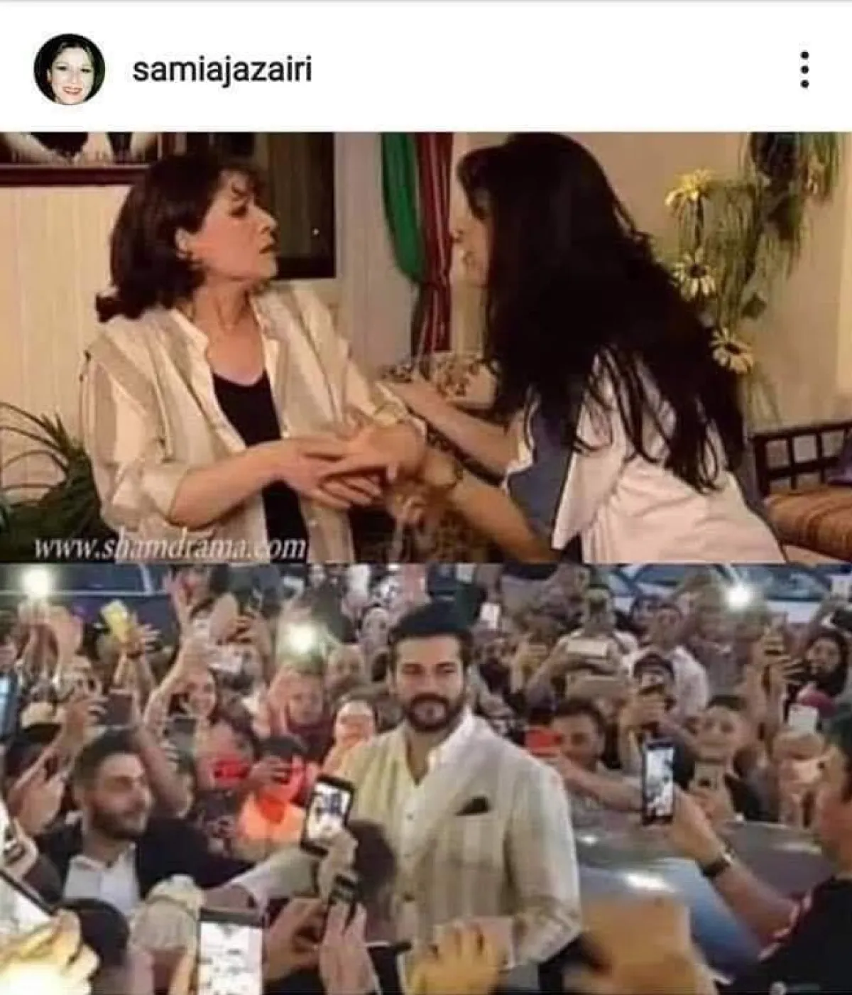 نشرت النجمة السورية القديرة سامية الجزائري عبر حسابها على " انستغرام " صورة للنجم التركي بوراك أوزجيفيت خلال زيارته الأخيرة إلى لبنان و أرفقتها بصورة لها من مسلسل " جميل وهناء " الذي قدمته قبل سنوات طويلة حيث بدأ التشابه واضحاً بين القميص الذي كانت ترتديه خلال أحد مشاهد المسلسل الذي قدمته مع النجمين أيمن زيدان و المعتزلة نورمان أسعد مع القميص الذي ارتداه النجم بوراك خلال زيارته الأخيرة إلى بيروت و التي شهدت تجمع ألاف من المعجبين.