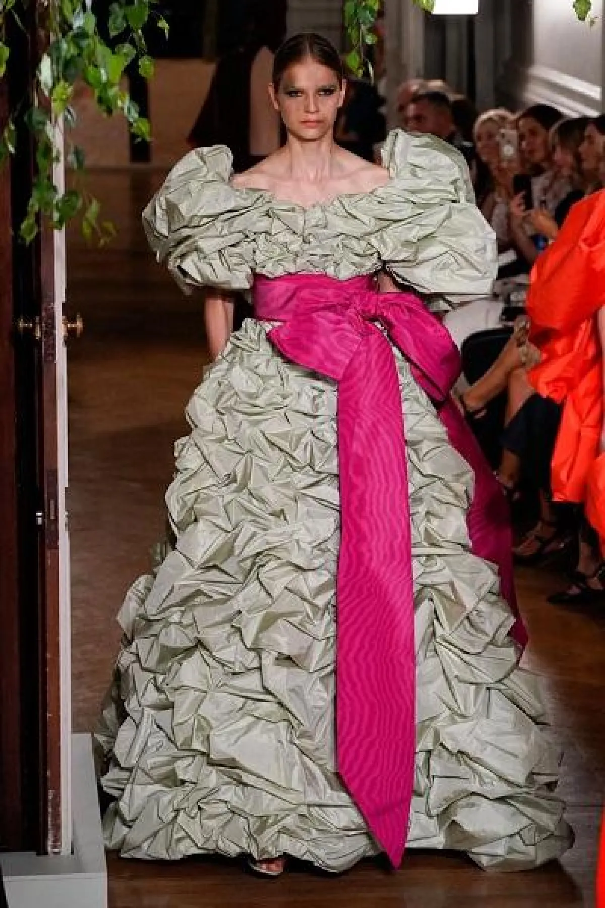 وظهر الحزام على منصة فيكتور آند رولف Victor& Rolf، بتصميم العقدة الأنثوي الناعم من قماش الساتان المفعم بالألوان، كما أخذ شكل العقدة الضخمة باللون الفوشيا الفاخر على منصة فالنتينو Valentino.