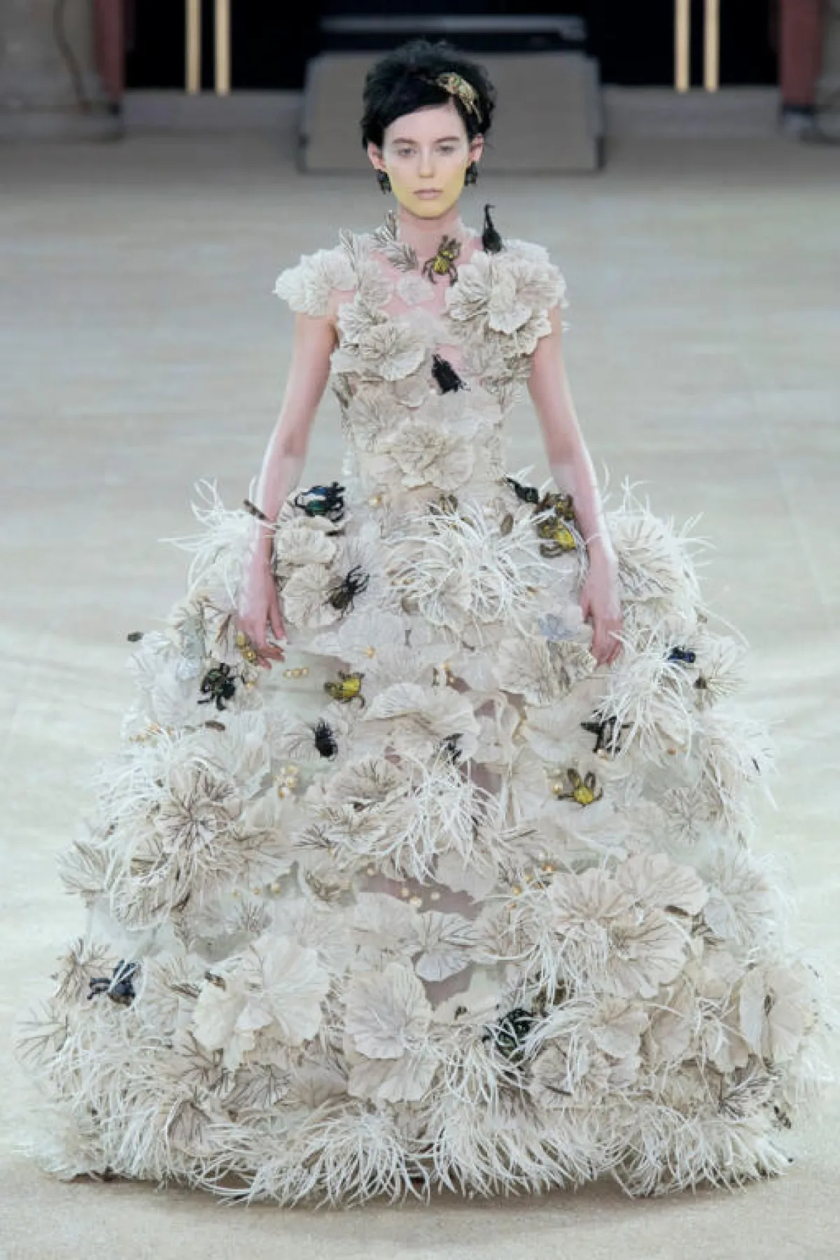 لم تعد تطريزات الورود مرتبطة بموسم معين، أو نشاهدها فقط بأجواء الربيع، بل يمكنكِ اختيار هذا الفستان من Guo Pei مع تطريزات الورود على كامل الفستان، ولمسة من الريش المترفة تزيدكِ فخامة.