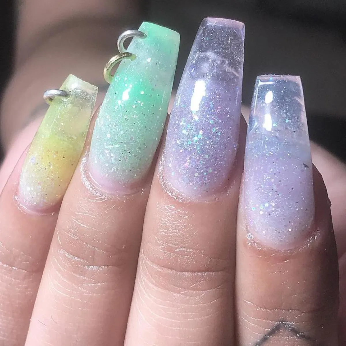 واحدة من الأفكار المميزة والجذابة بصيحة الأظافر، هو أن تعتمديها مع لمسة من اللمعان، وعادةً ما تكون بالطلاء الشفاف نفسه، اختاريه مع كل الأظافر، ولكننا ننصحكِ أن تعتمديه ببعض أظافر أصابع يديكِ فقط وليس كلها، حتى لا تبدي متكلفة للغاية، وسوف تبدين غاية في الجاذبية إن اعتمدتِ معه لمسة من الأيشادو الميتالك البراق.