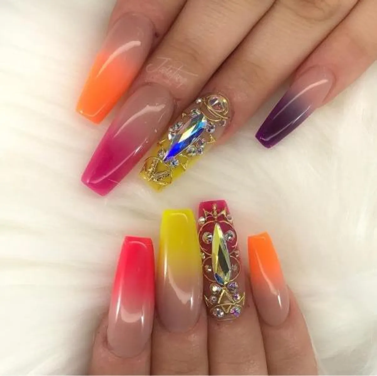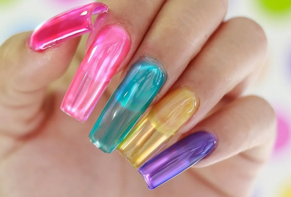 أظافر الجيلي بطبيعتها شفافة، لهذا هناك بعض الألوان المميزة التي سوف تضيف لكِ لمسة ساحرة لمظهركِ ككل، من الممكن أن تعتمديها بألوان البرتقالي، والأحمر، والأزرق، ولكن لا ننصحكِ باختيار ألوان النود، لأنها ستكون فاتحة وباهتة قليلًا، مع اللمسة الشفافة التي تعتمد عليها فكرة هذا النوع من صيحات الأظافر.