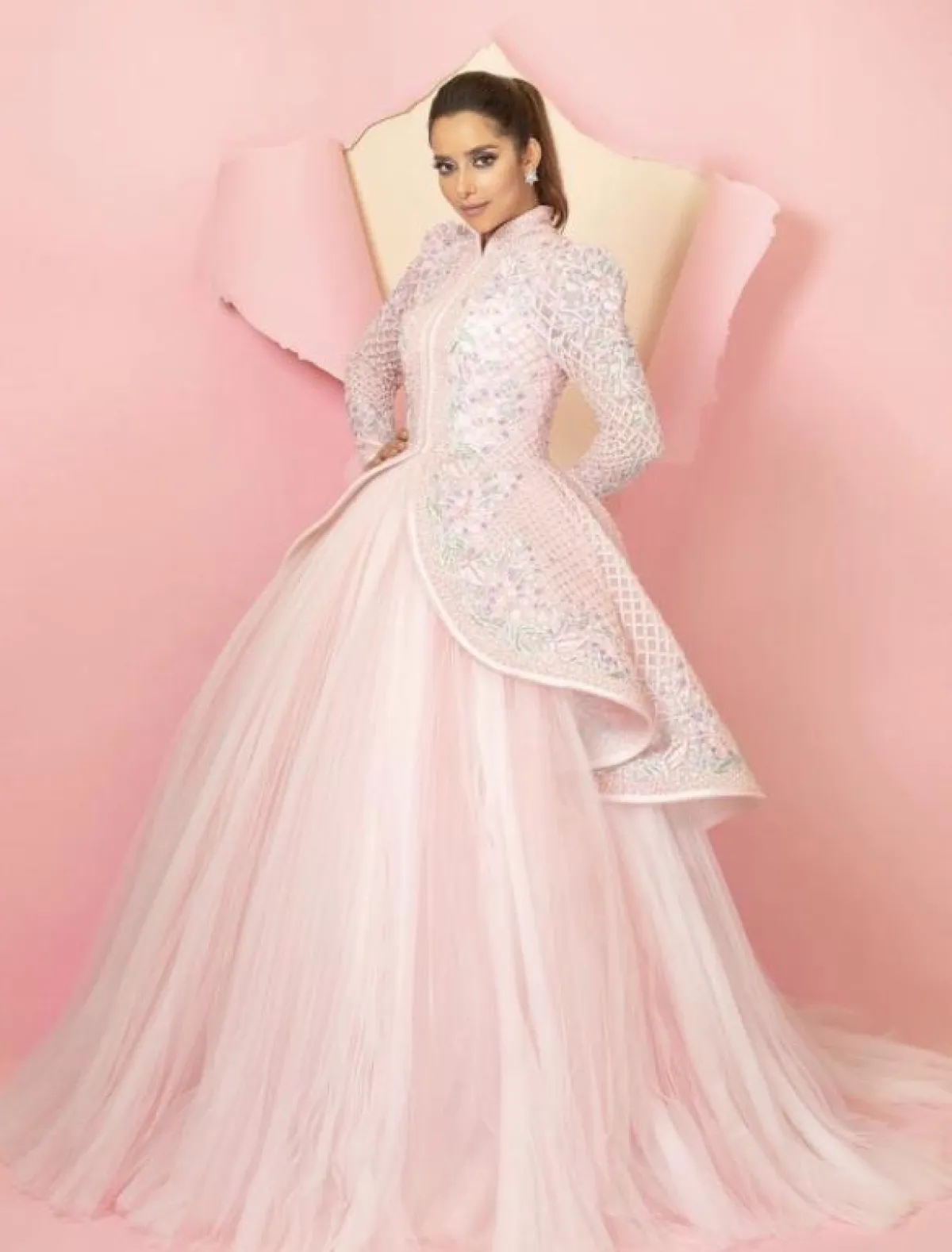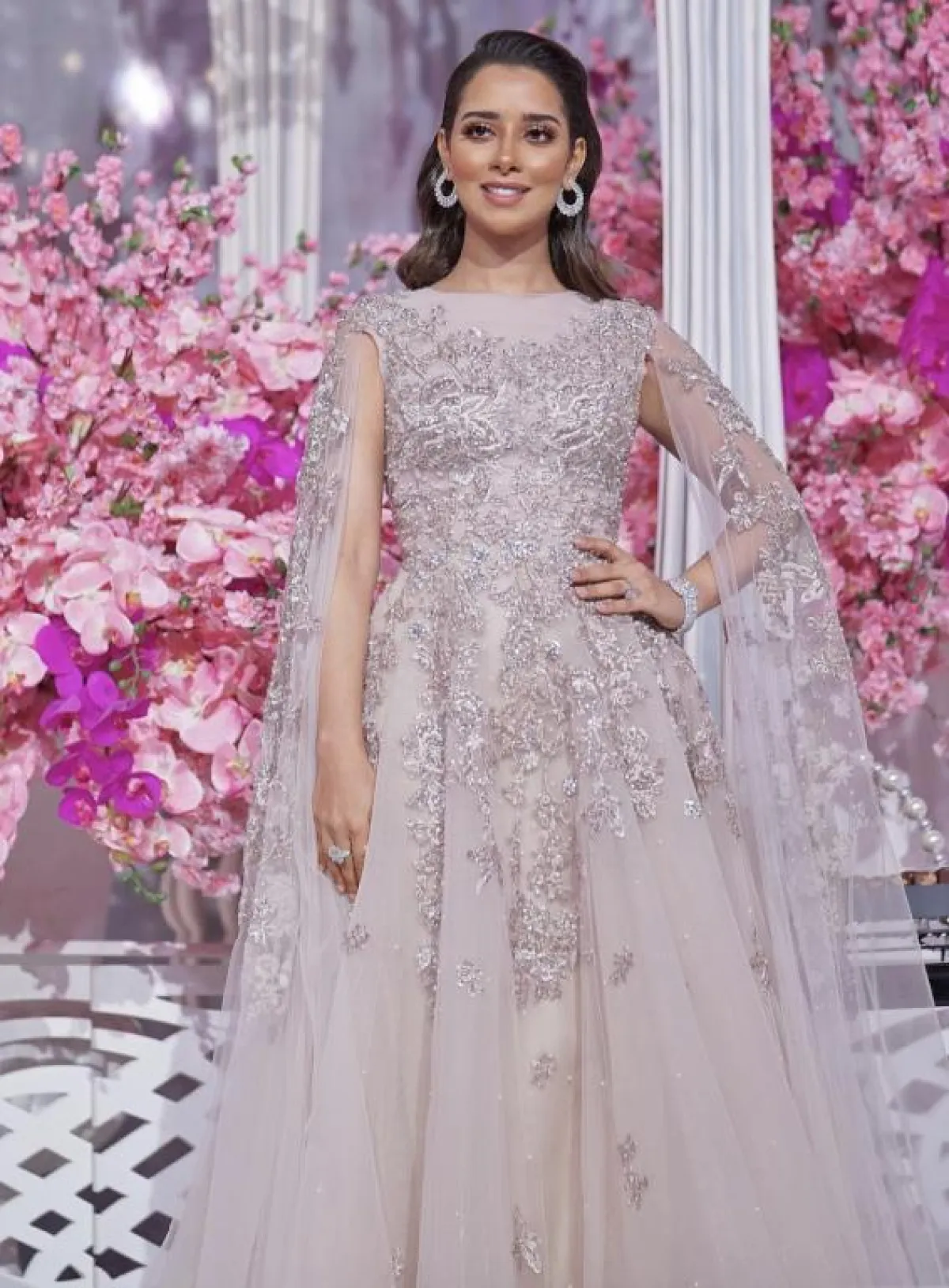 اللون الزهري وخصوصًا بدرجاته الفاتحة، يُعتبر من الألوان المفضلة بالنسبة للكثيرات من النساء، وقد شاهدنا بلقيس فتحي في إحدى المناسبات الخاصة في الرياض، وقد اختارته على فستان سهرة من “أليكس بيري” Alex Perry تصميمه جمع بين الأناقة والعصرية، وقد نسقت معه مجوهرات ماسية بارزة.