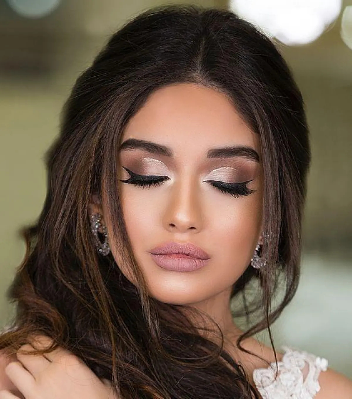 ليس أجمل من المكياج الخليجي للمرأة الشرقية التي تتمتع بعيون واسعة وملامح جذابة، لذلك أبرزي جمالك في يوم عرسك من خلال اعتماد مكياج خليجي يخطف الأنفاس، بحيث تعتمدين رسمة العين بأسلوب شرقي ساحر من خلال تمرير الظلال البرونزية على كامل الجفن العلوي، والظلال البيضاء الفاتحة على أسفل الحاجبين لتضمني نظرات مشعة ومشرقة. كذلك، اعتمدي رسمة الأيلاينر الأسود المجنح الممدود الى خارج العين، مع إضافة الخطوط البرونزية على حدود الجفون السفلية، ولا تنسي استخدام الرموش الاصطناعية الكثيفة التي تمنحك نظرات ساحرة. أما أحمر الشفاه، فاعتمديه باللون الزهري أو البني الفاتح.