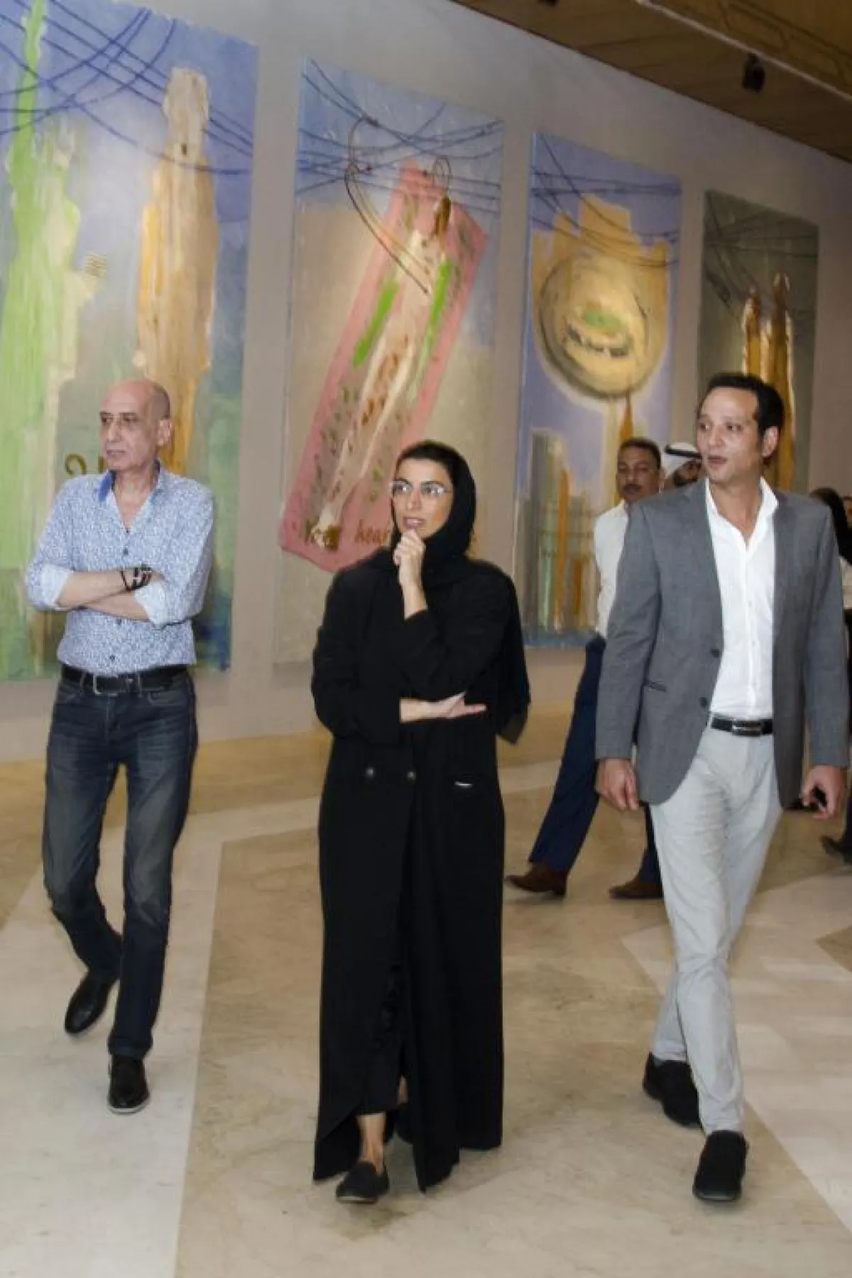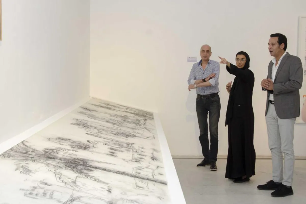 إذ تجولت وزيرة الثقافة وتنمية المعرفة في أرجاء المعرض واطلعت على عمل الفنان الفرنسي جيرار غاروست ضيف شرف على البينالي الذي تزين أعماله قصر الإليزيه وكاتدرائية إيفري في فرنسا ومسرح نامور في بلجيكا، كما توقفت الكعبي عند الأعمال الفنية لفناني الإمارات والتي تتضمن مشاركات من مطر بن لاحج وعمار العطار.