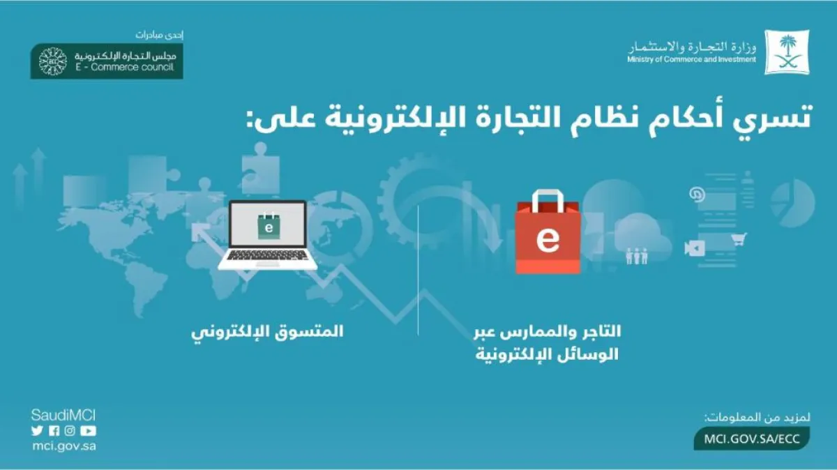 أوضحت وزارة التجارة والاستثمار السعودية، أن نظام التجارة الإلكترونية، الذي أقرَّه مجلس الوزراء الثلاثاء، "يعزز موثوقية التجارة الإلكترونية، ويزيد مساهمتها في الاقتصاد الوطني، بالتالي تحقيق أهداف الرؤية السعودية 2030 بتحفيز وتطوير أنشطة التجارة الإلكترونية".