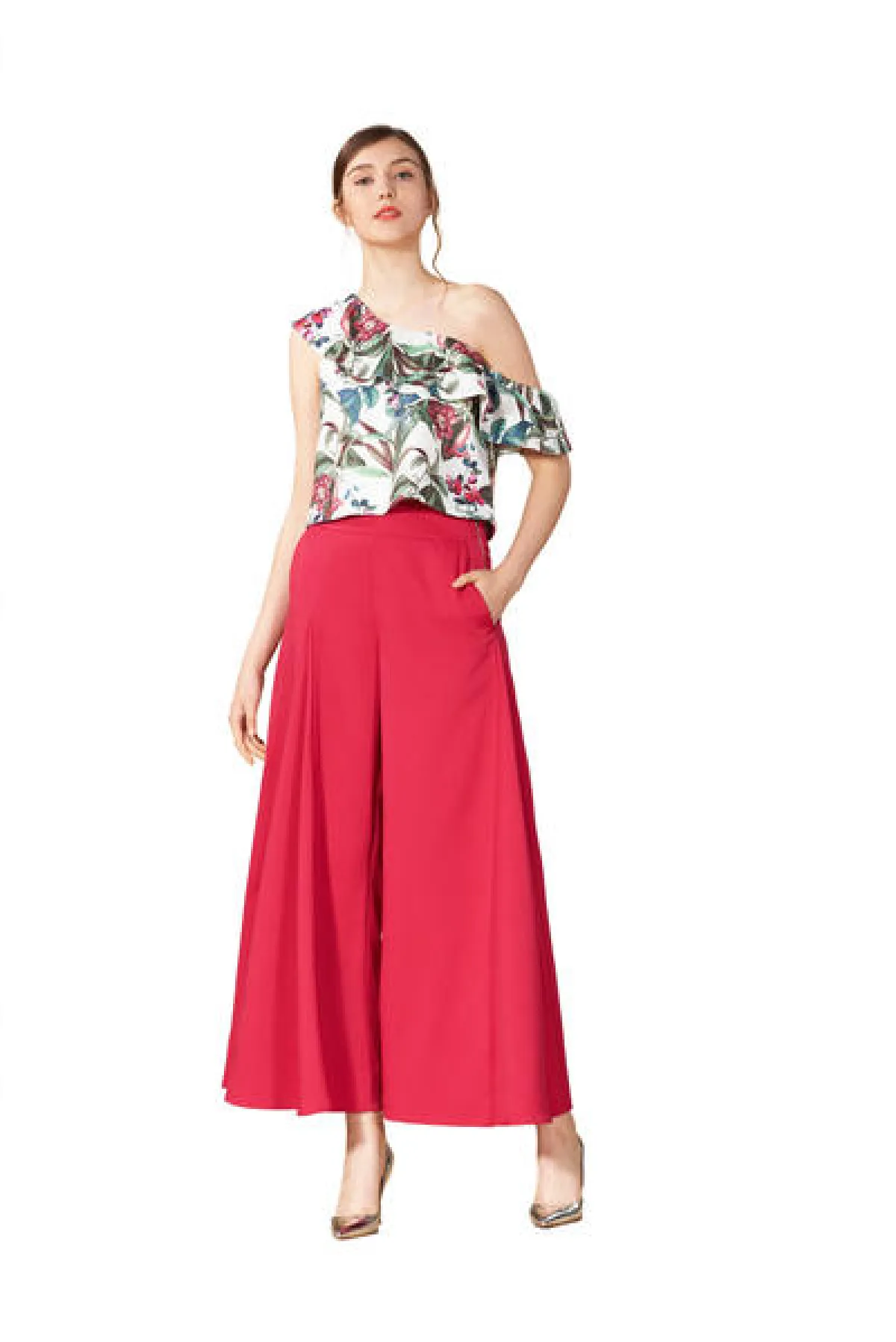 - بنطلون نسائي ميدي مطبّع بالورود من ليليس