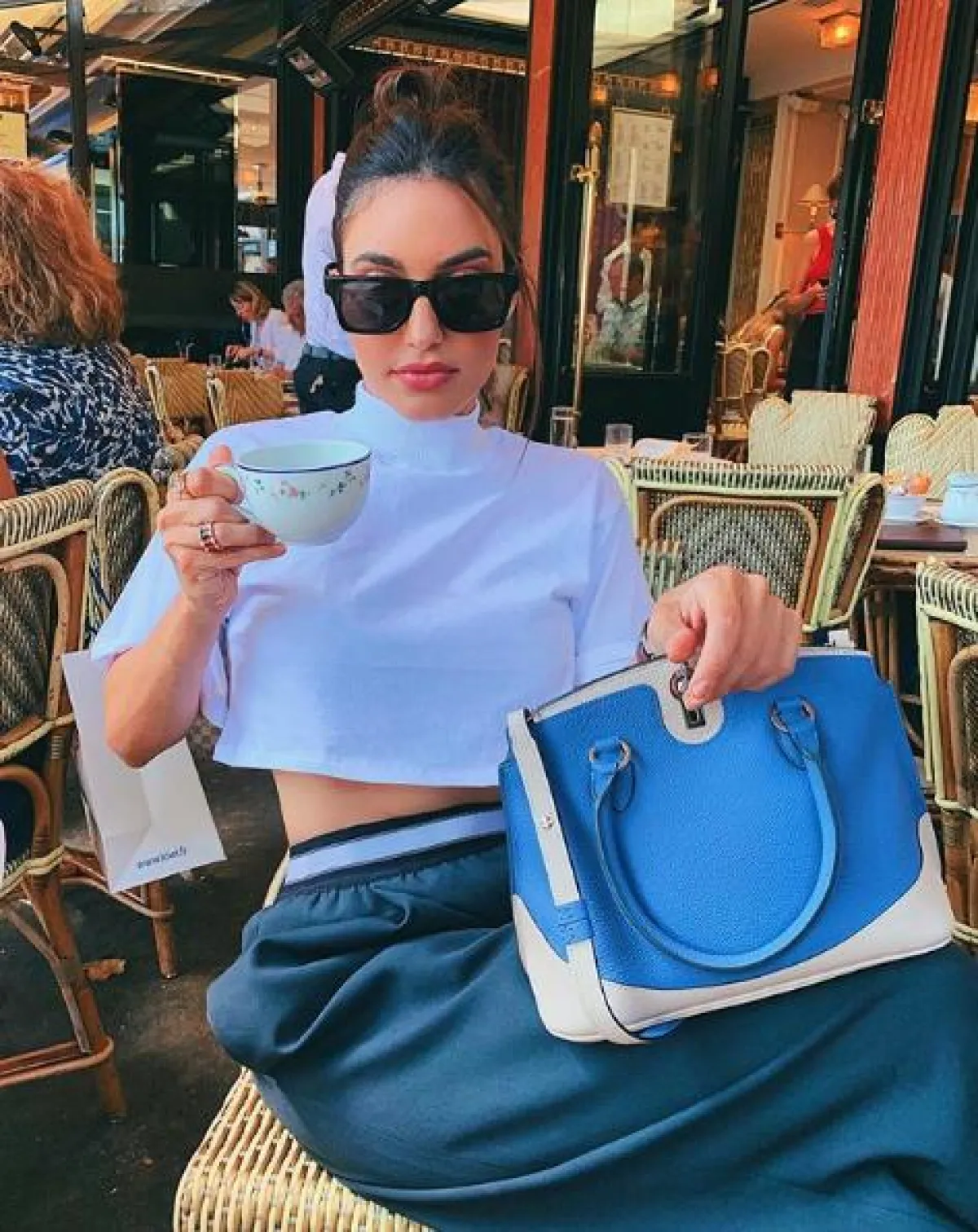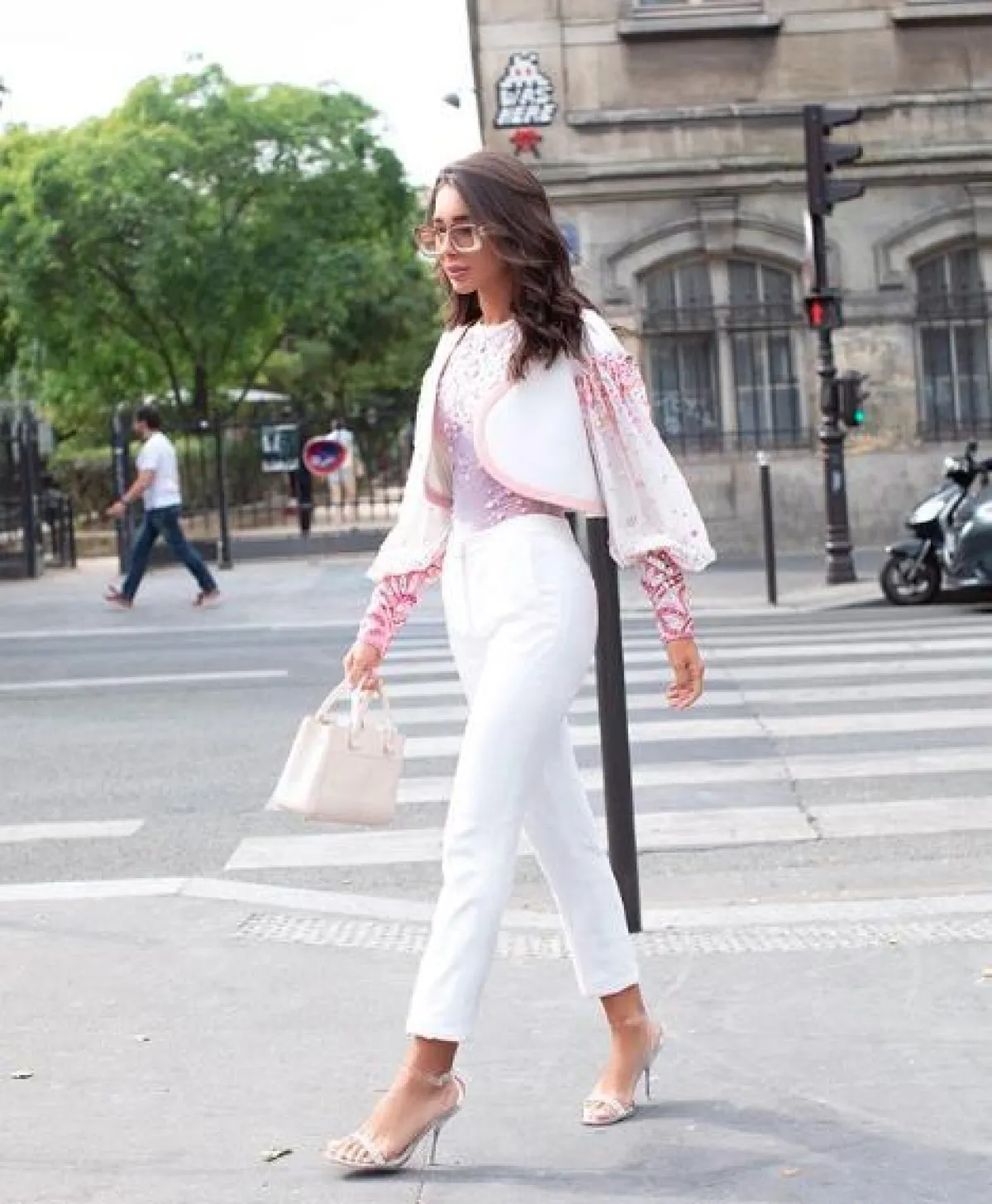 شاهدنا الفاشينيستا مرام زبيدة في أسبوع الموضة للهوت كوتور، في عدد من اطلالات ستريت ستايل مميزة ولافتة، ومنها هذه الاطلالة التي اختارت فيها بنطلونًا بخصر عالٍ باللون الأبيض، نسقت معه توب مطرزة باللون الزهري من “جورج حبيقة” Georges Hobeika، وأكملت الاطلالة بشنطة يد باللون الأبيض من “شانيل” Chanel وصندل بكعب عالٍ، ونظارات شمسية من “ميو ميو” Miu Miu.