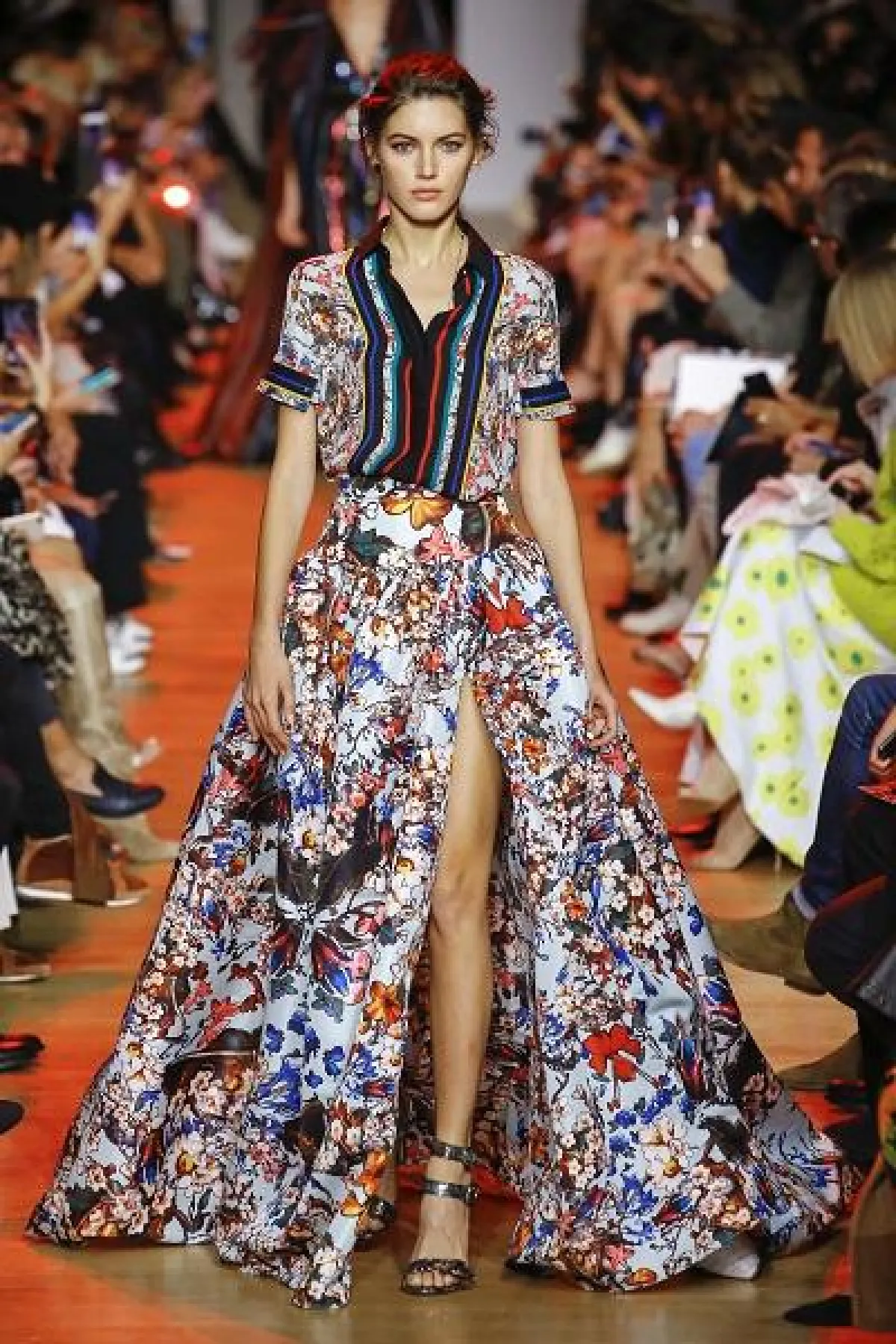 -ولم يفارق الحزام العريض المصمم من القماش الملون بطبعات الورود المنعشة منصة إيلي صعب Elie Saab لموسم صيف 2019، حيث رصدناه مضفياً على الإطلالة بالفستان نوعاً من الأنوثة الفاخرة من خلال لونه المماثل للون الفستان.