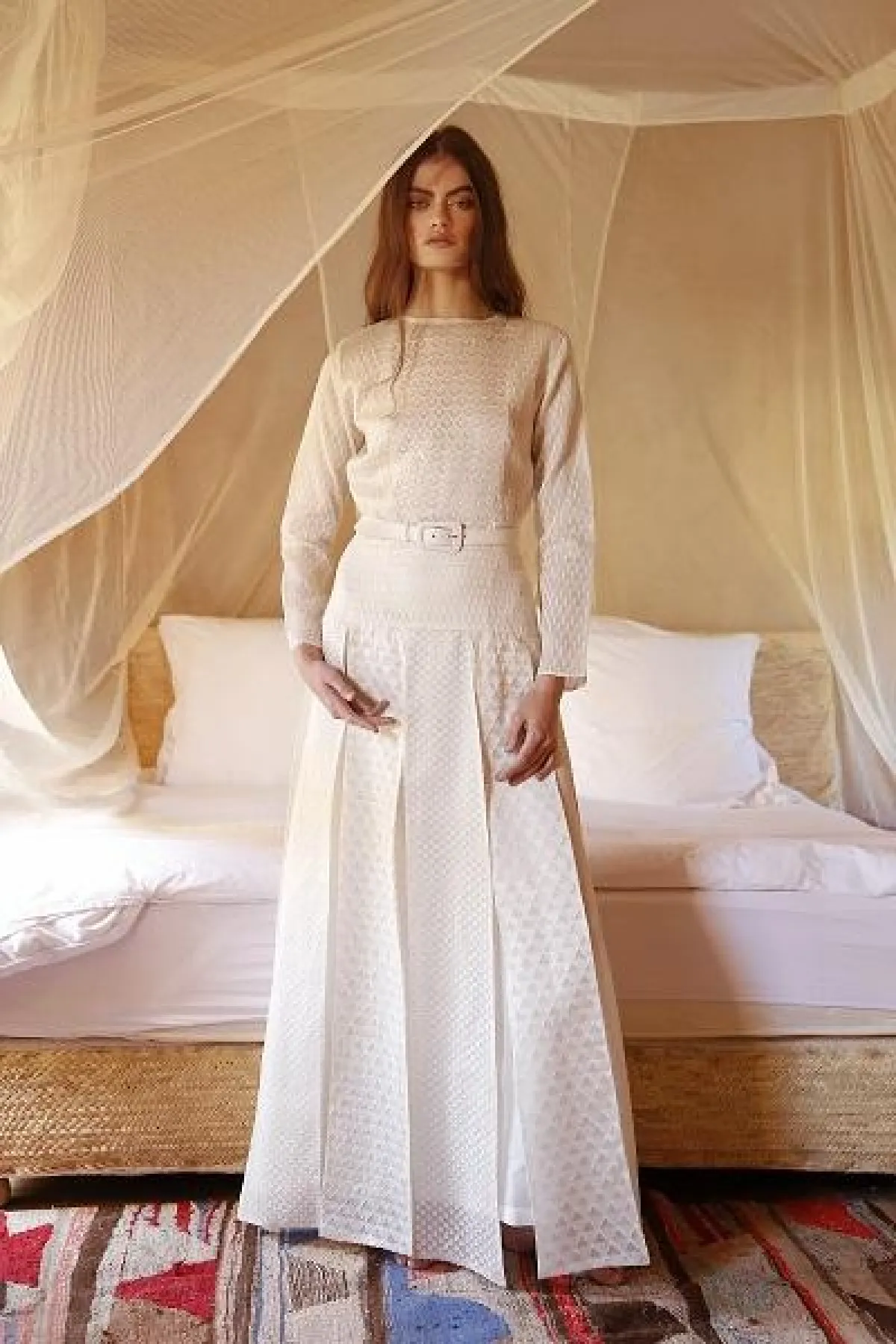 تعتبر الشراريب أكثر ما يميّز هذه المجموعة! فأنت لن تجديها في كل قطعة وتصميم، إنما يتم وضعها بمهارة. كذلك، تعدّ الألوان الجريئة التي تظهر من خلال التقليمات والدانتيل رائجة في مجموعتي، وتجدينها مع أحزمة مطابقة لها وتكمّل الإطلالة.