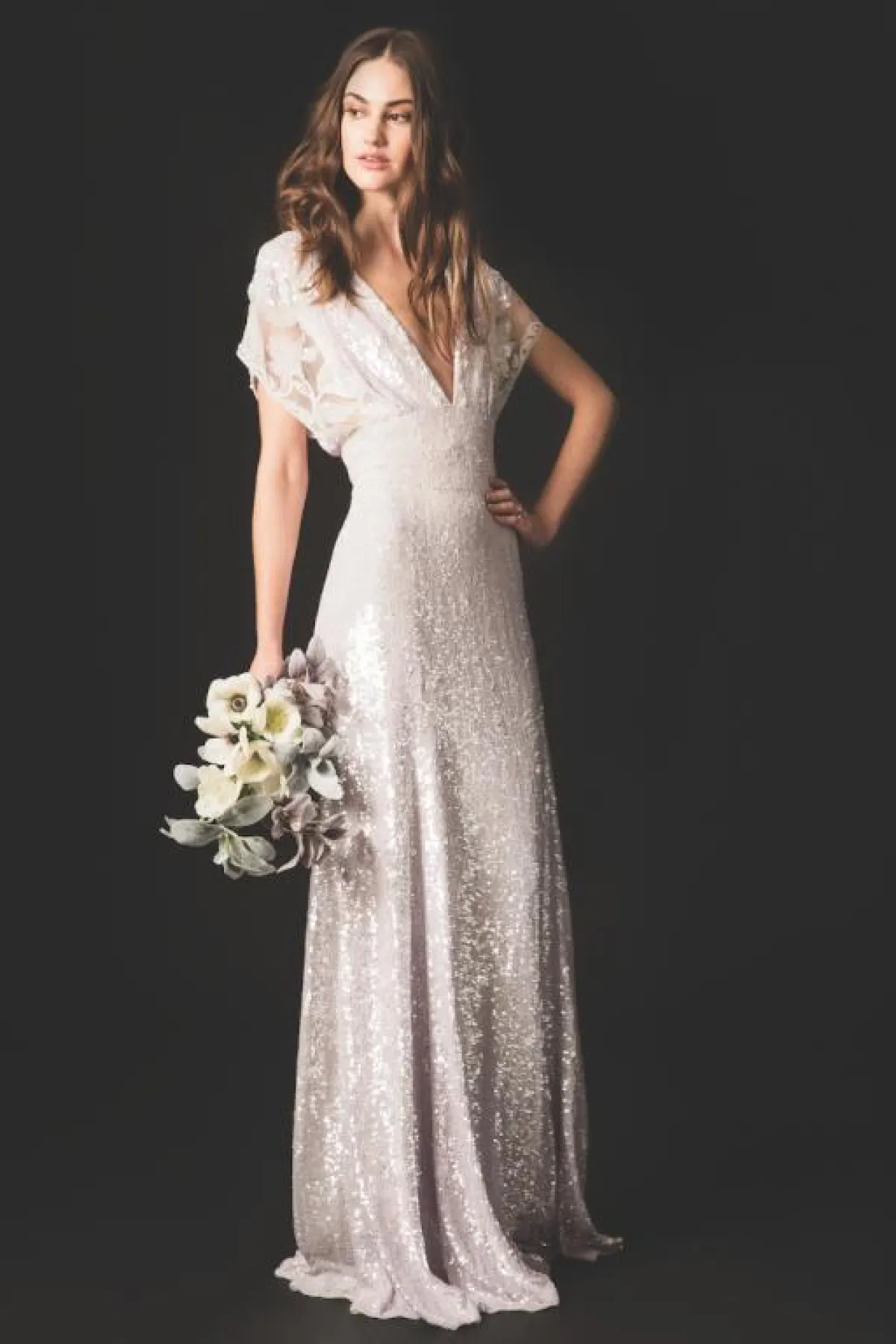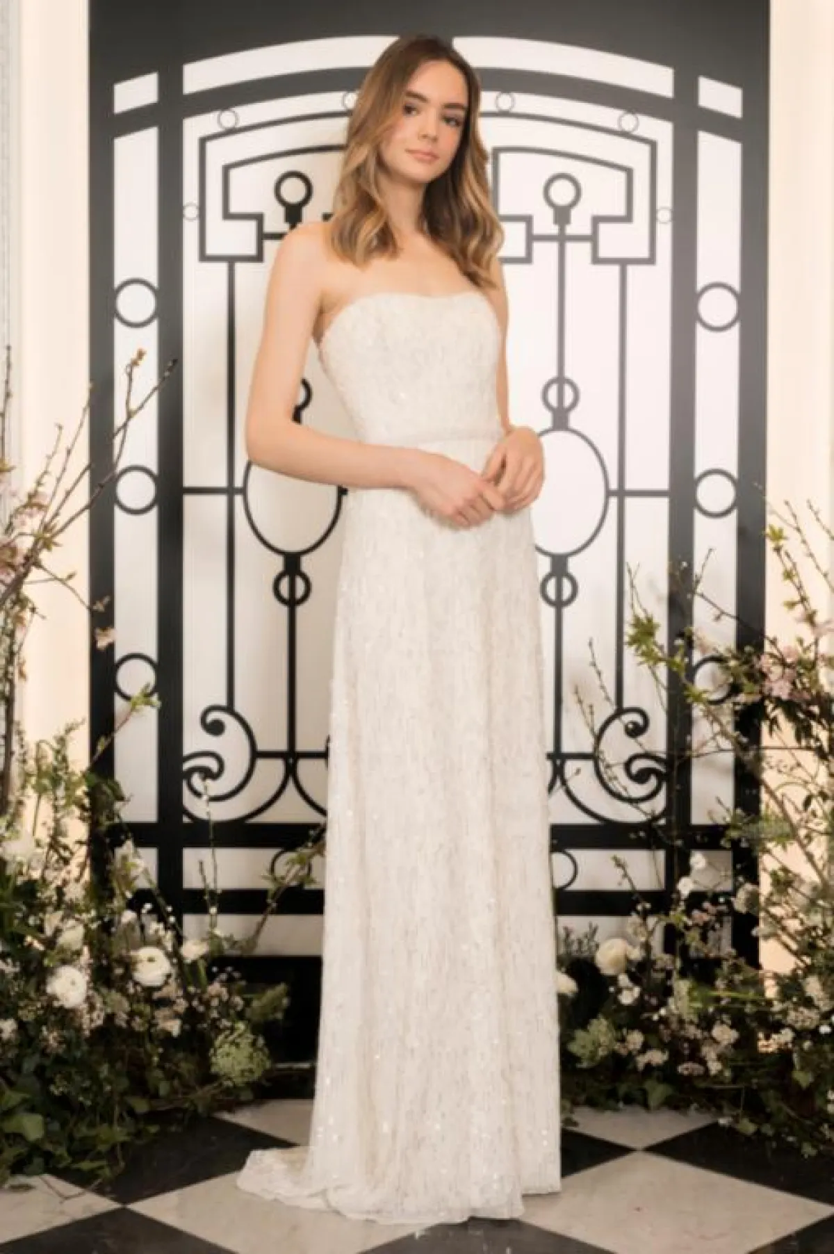 لفتنا هذا الفستان من مجموعة BHLDN مع حزام الخصر تحت منطقة الصدر، وعلى الخصر، لإبراز هذه المنطقة أكثر، على أن يكون باقي الفستان منسدلًا وناعمًا مع اللمسة البراقة.