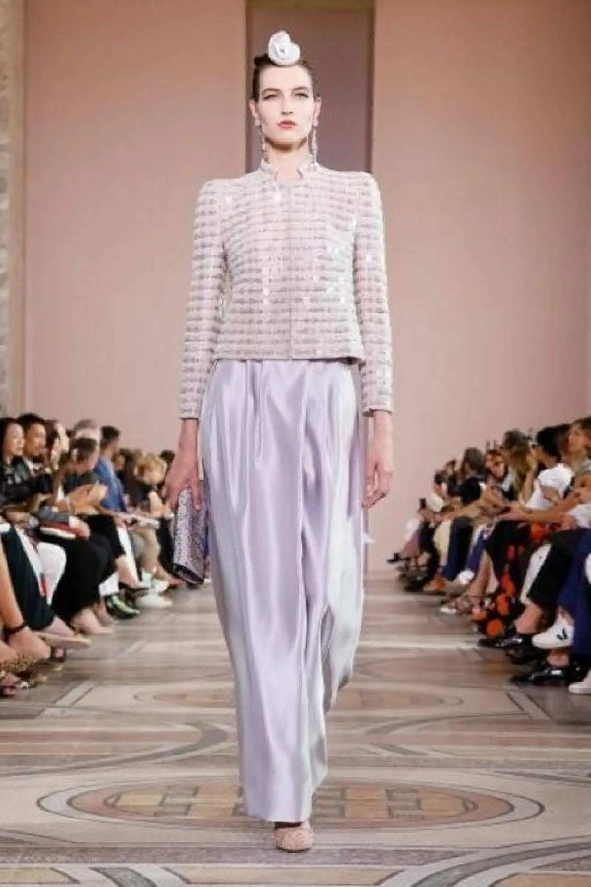 - لاحظنا الحضور الكبير للبدلات المؤلفة من بناطيل واسعة كما في مجموعات شانيل Chanel وجورجيو أرماني Giorgio Armani، أستعيني بها لتخفي منطقة الأفخاذ الممتلئة أو النحيفة.