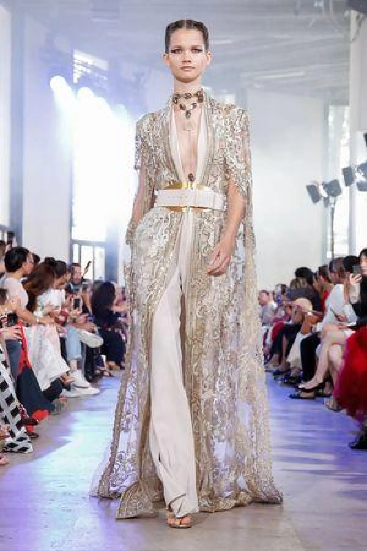 حزام الخصر العريض، مع لمسة ذهبية، كانت عنوان الكثير من التصميمات بمجموعة إيلي صعب، التي استوحاها من دول شرق آسيا، الذي يُعتبر هذا الاكسسوار قطعة أساسية بملابسهنّ، بالإضافة إلى أنّ إيلي صعب يعشق هذه القطعة التي تُبرز جمال المرأة مع إبراز خصرها.