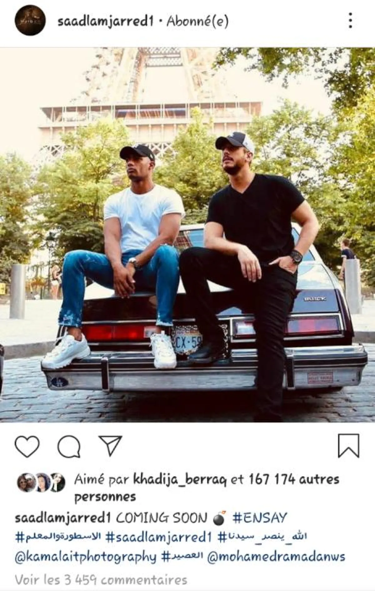 شارك نجم البوب المغربي سعد لمجرد صورة تجمعه بالفنان المصري محمد رمضان، معلناً عن جديده الفني رفقته، والذي اختارا له عنوان "إنساي".