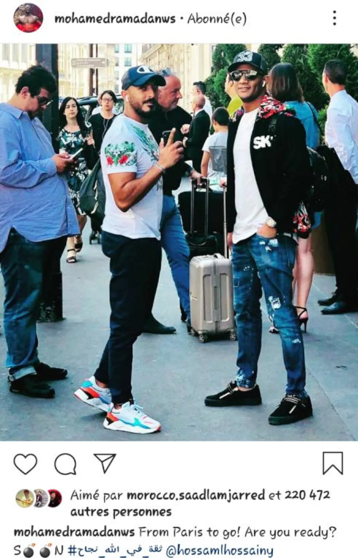 في المقابل، شارك الفنان محمد رمضان نفس الصورة، التي من المفترض أنها من أحداث الكليب، وخلفهما برج إيفل في العاصمة الفرنسية باريس، والمأخوذة من لقائهما خلال تحضير العمل المشترك، الذي طال انتظاره من طرف جمهورهما معاً، وعلّق على الصورة مدوّناً: "قريباً إنساي.. الثقة في الله نجاح".