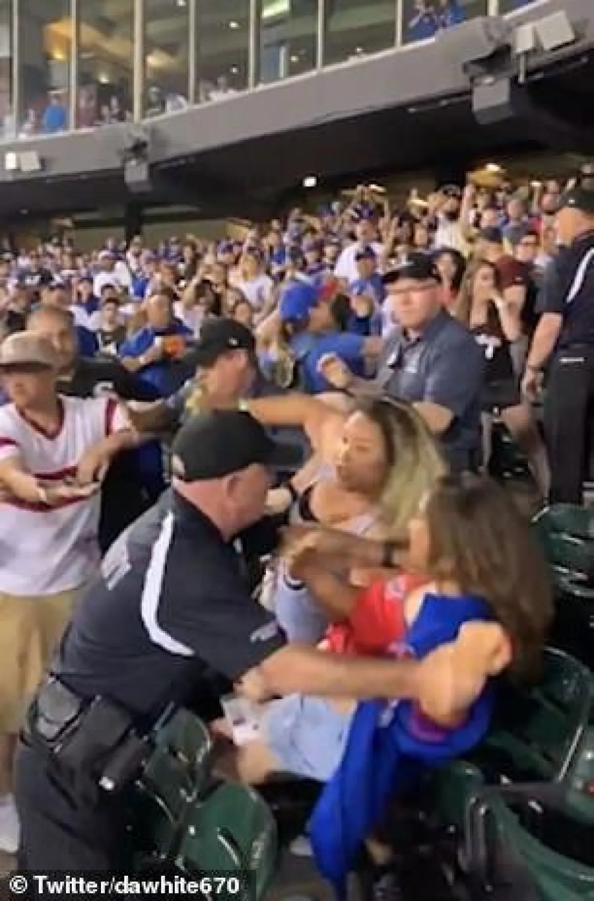 ومع تطور المعركة بين السيدات اضطر الجمهور لاستدعاء رجال الشرطة للسيطرة على الموقف، حيث تمكن الأمن من منع سيدة من الاعتداء على أحد المشجعين بالضرب، وفي أثناء محاولة 3 من رجال الشرطة تقييد إحدى المشجعات بالكلبشات قامت وصديقتها بالاعتداء والهجوم على رجال الشرطة وسط حالة من الفوضى. وقد انتهت المباراة بفوز White Sox على Chicago Cubs بنتيجة «3-1».