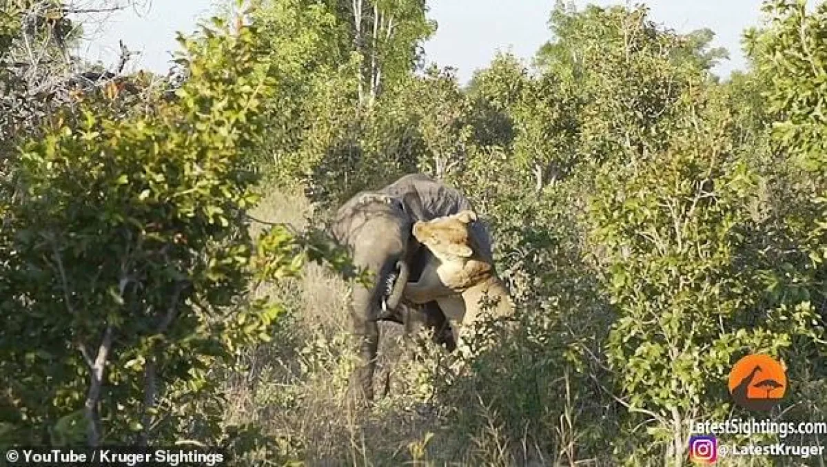 ونشر موقع Kruger Sightings في موقع الفيديوهات العالمي «يوتيوب» فيديو لمعركة دامية بين لبوة جائعة وفيل وقع بين مخالبها بحديقة «هوانج» الوطنية بزيمبابوي، وفقاً لصحيفة «ديلي ميل» البريطانية.