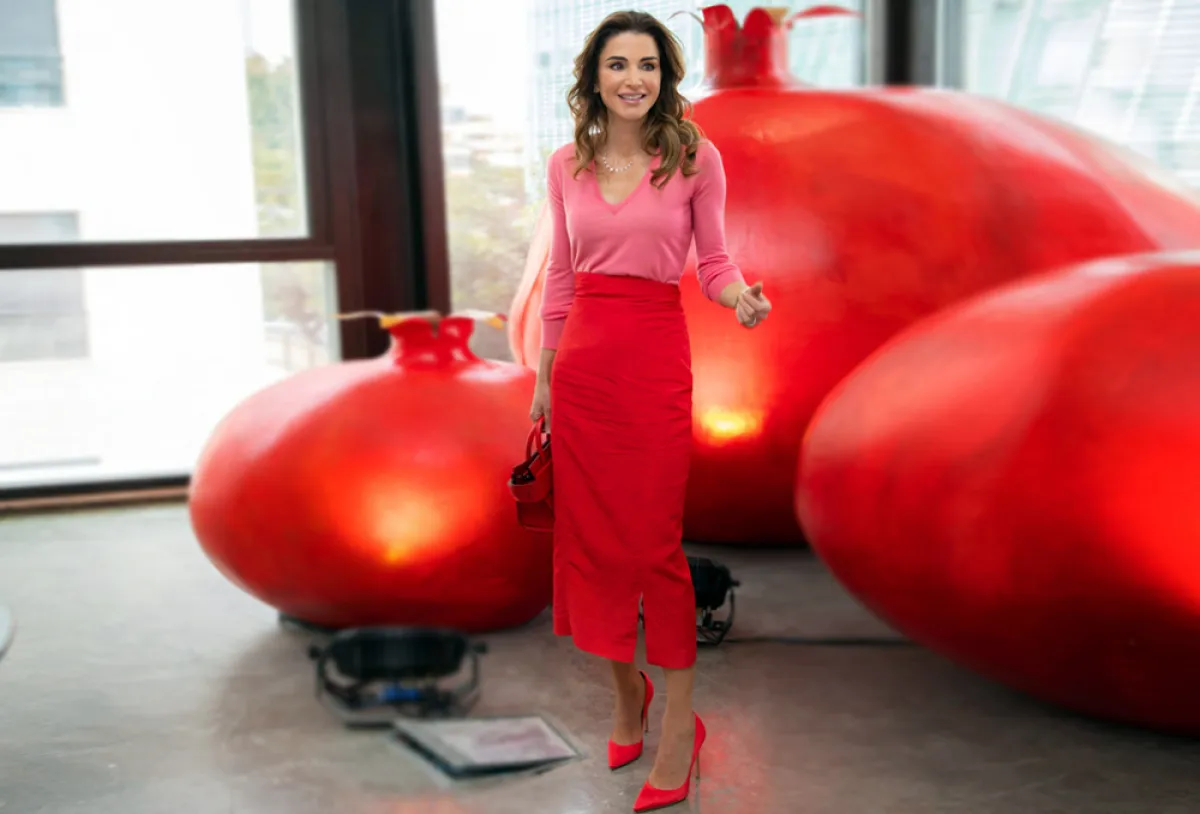 تنسيق باللونين الأحمر والزهري اعتمدته الملكة رانيا