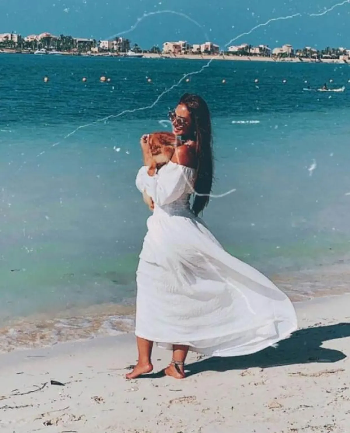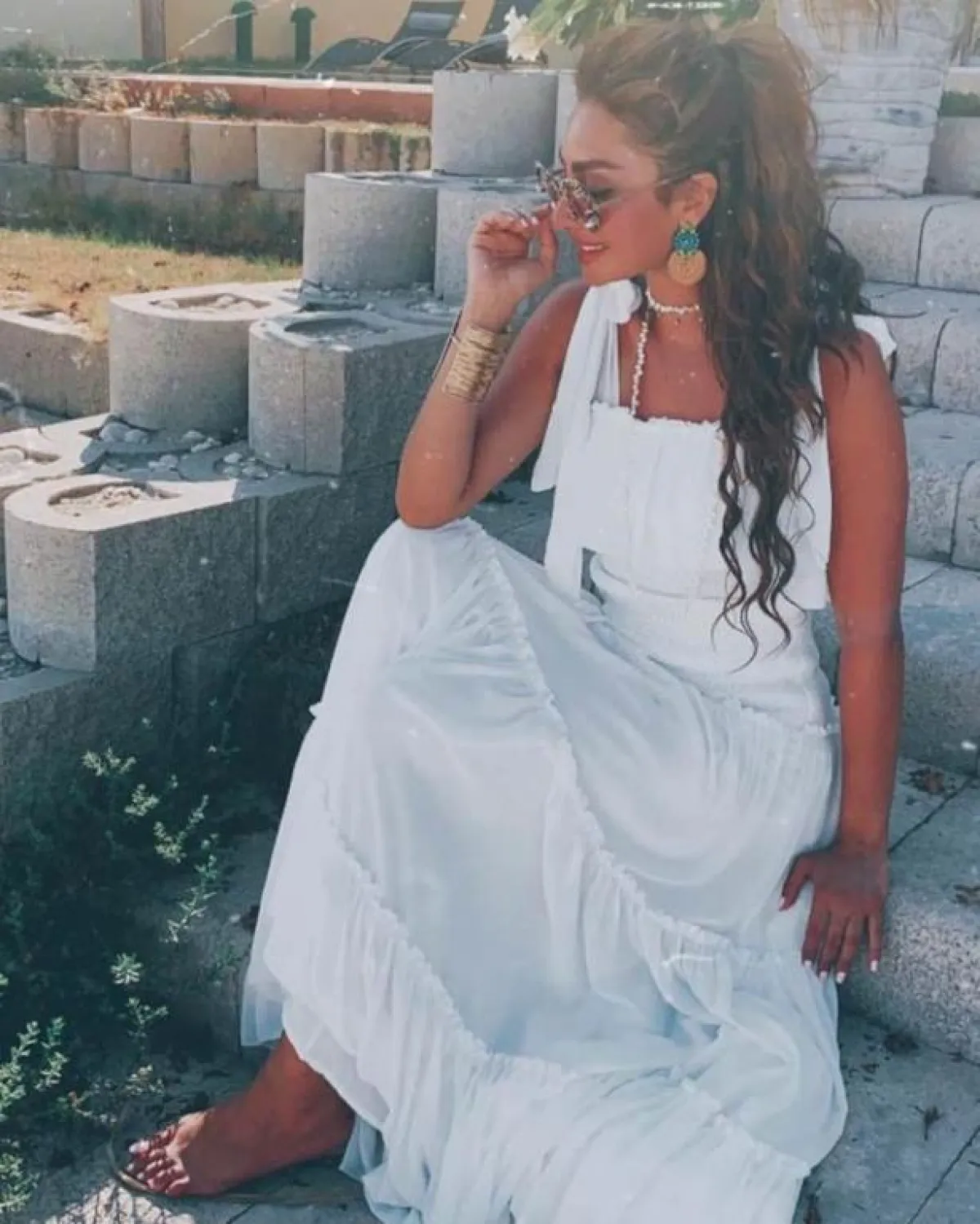 من أكثر القطع التي يمكن أن ترتديها باللون الأبيض، هي «الفساتين»، حيث تناسب الاطلالات الرسمية، والعملية، وهي الخيار الأول الذي يمكن أن تفكري به للشواطئ، أو المشاوير غير الرسمية، لذلك اختارت نور الغندور الفستان الأبيض على الشاطىء الذي أبرز جمالها ولون بشرتها.