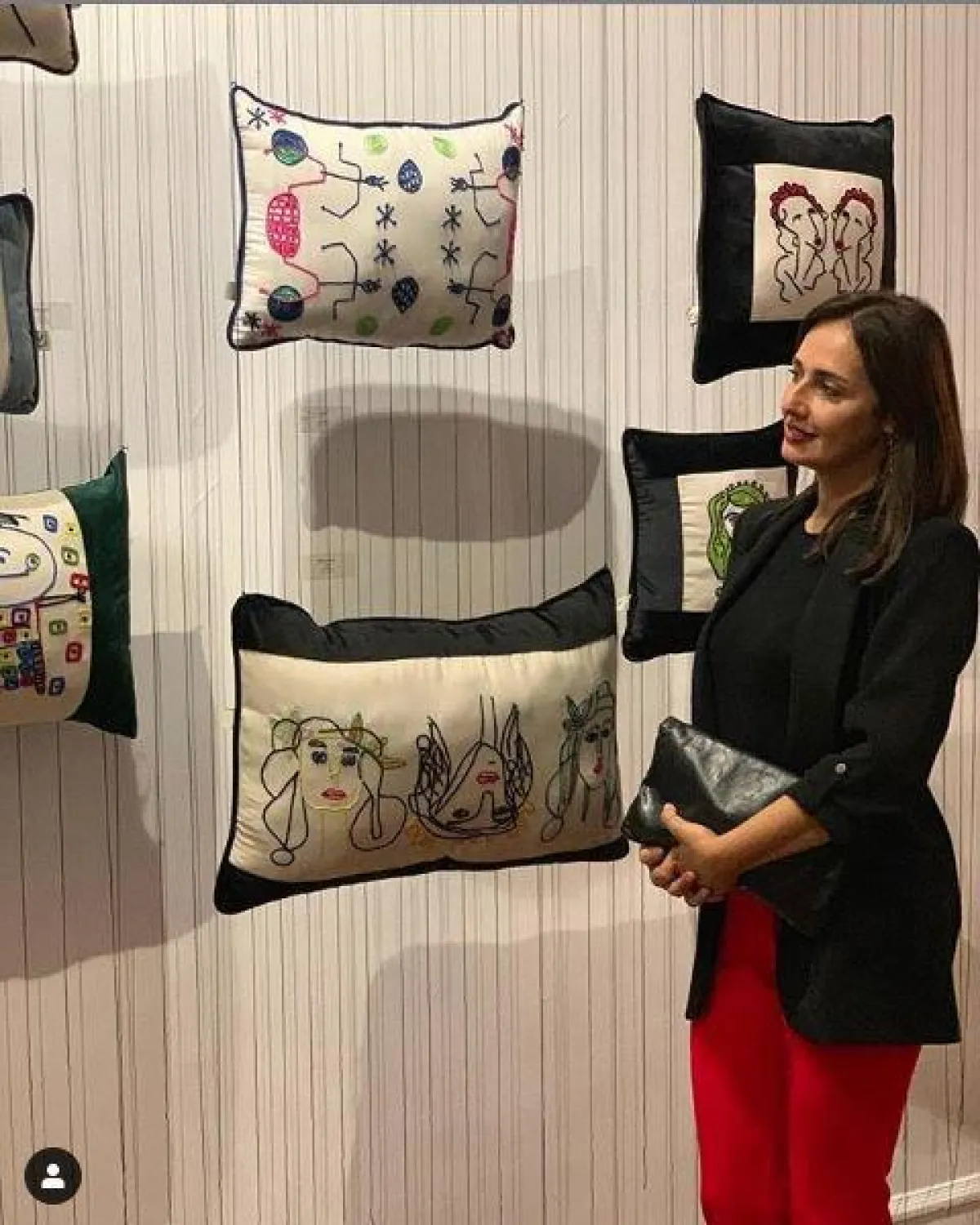 تألقت النجمة المصرية ببلايزر باللون الأسود، نسقته مع بنطلون باللون الأحمر وحقيبة باللون الأسود أيضاً.