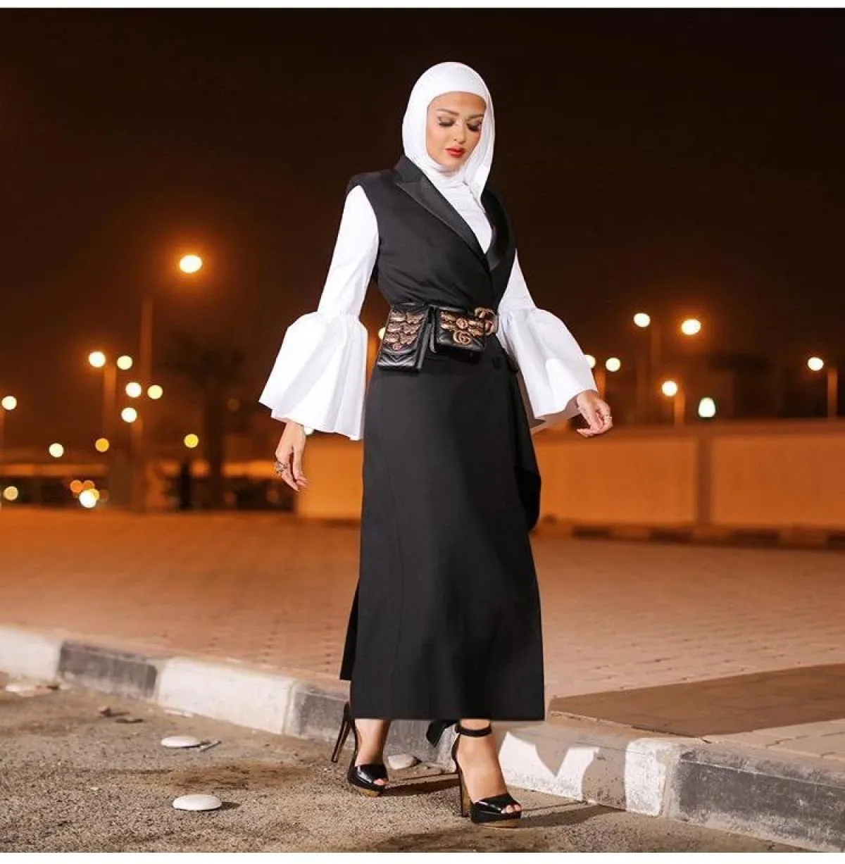 اختارت مرمر محمد إحدى العبايات التي تناسب كلا من النمط الكلاسيكي والكاجوال، ونسقتها بالطريقة الكلاسيكية المترفة، لترتدي حزام خصر أنيقا من غوتشي Gucci، مع صندل برباط الكاحل، ونسقت مع العباية من دون أكمام قميصا أبيض بالأكمام المنفوشة، وبهذا تكون قد حولت اللوك بالكامل إلى إطلالة مناسبة لليل ولأوقات ما بعد الظهر.
