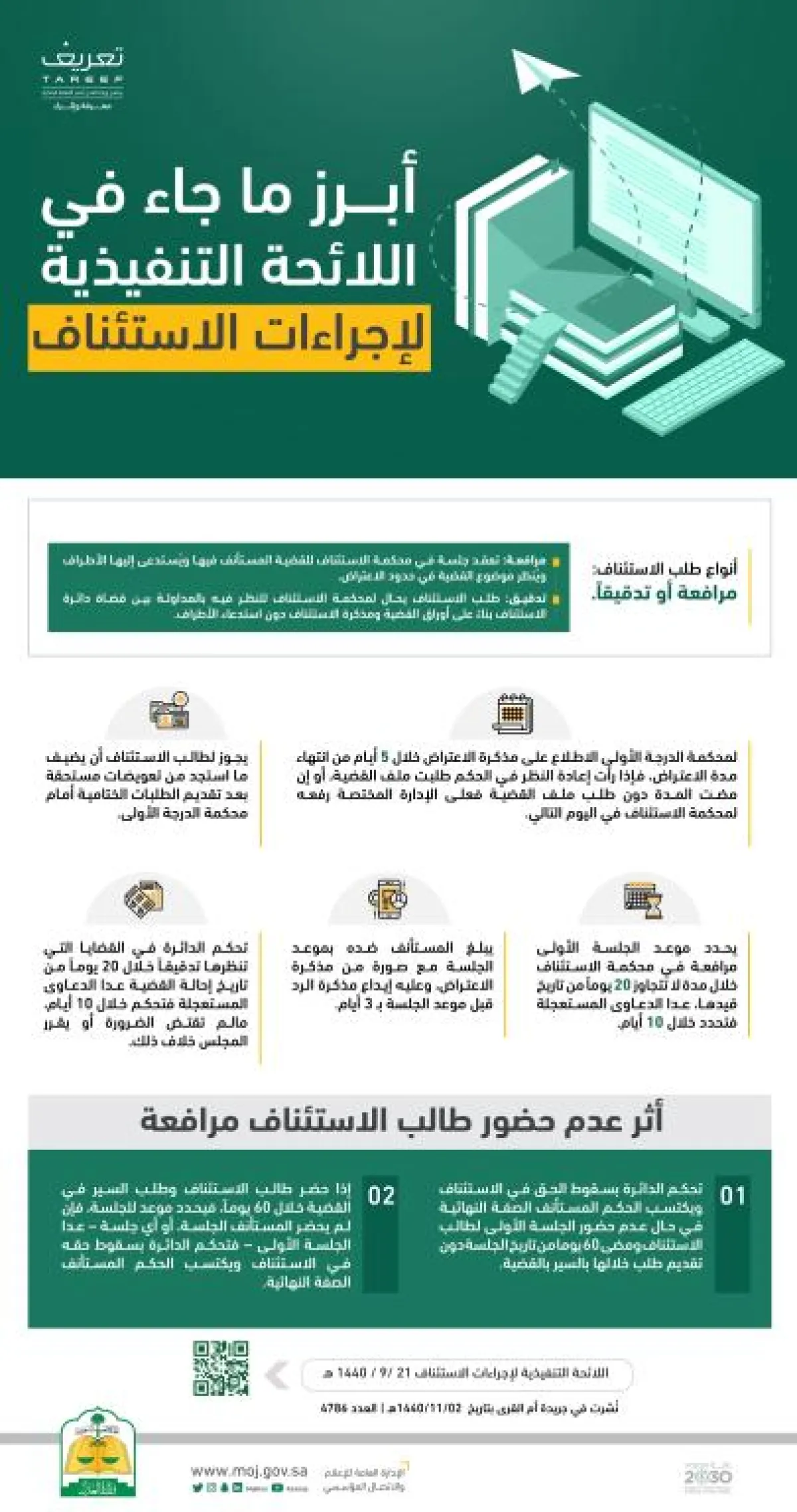 ودعت وزارة العدل المهتمين بالاطلاع على اللائحة ومذكرتها الإيضاحية إلى زيارة بوابة الوزارة الإلكترونية www.moj.gov.sa.