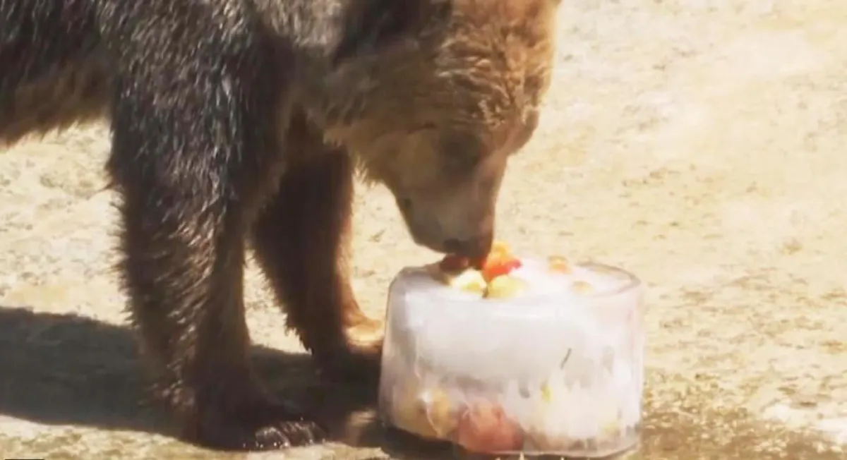 ويظهر في مقطع الفيديو المصور، الذي نشره الموقع الأمريكي، حيوانات مثل الدببة والليمور والقردة وغيرها، وهي تستمتع بقوالب المثلجات بالفواكه المجمدة، التي أنعشتها في موجة الحرّ، وساعدتها على احتمال درجات الحرارة العالية جداً، خاصة أن هذه الحيوانات غير معتادة على هذا الطقس في الدول الأوروبية التي تتميز بطقس معتدل أو بارد في معظم الأحيان.