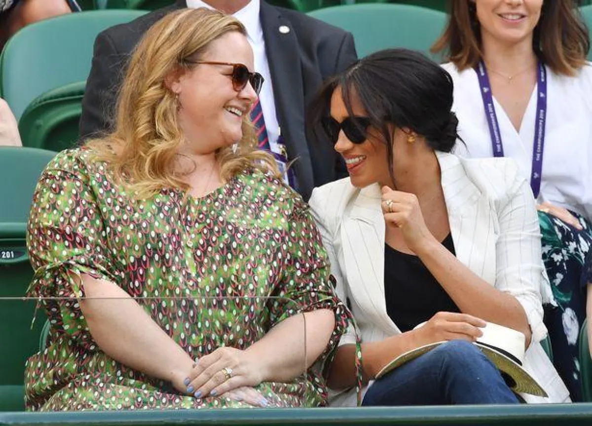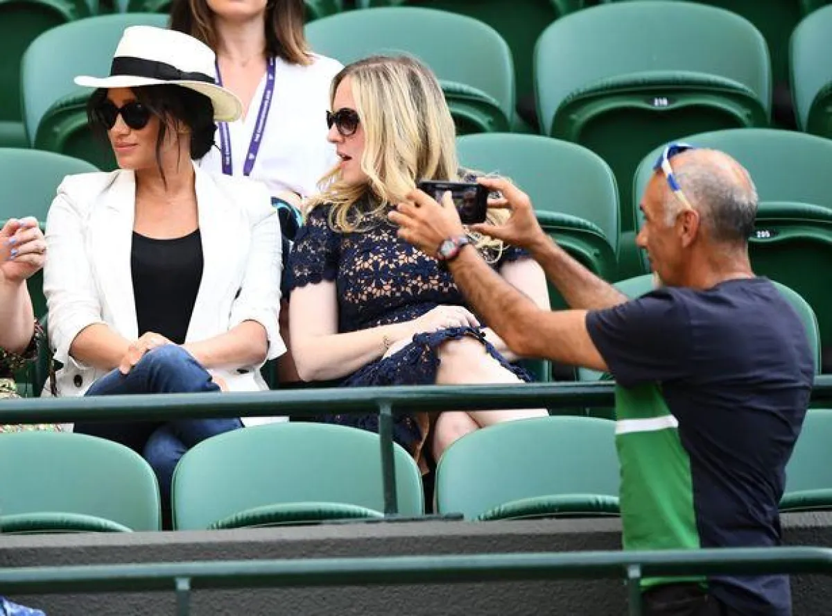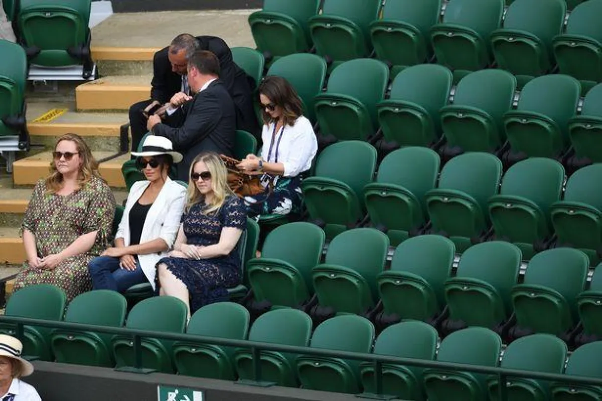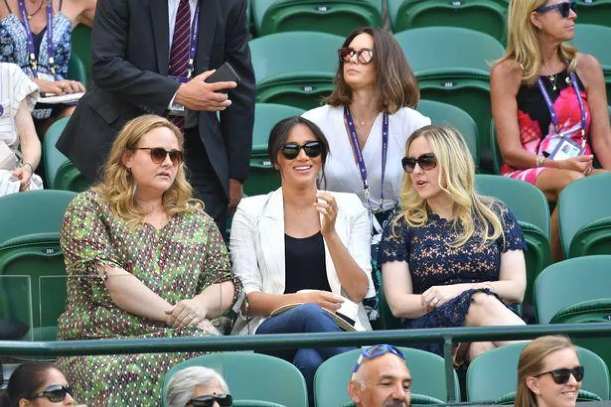فقد حضرت الدوقة ميغان ماركل إلى ملاعب ويمبلدون، بصحبة صديقتيها المقربتين الجامعيتين ليندسي روث، وجينفييف هيليس؛ التي يشاع إنها عرابة الطفل الملكي «آرتشي» ابن الأمير هاري وميغان.