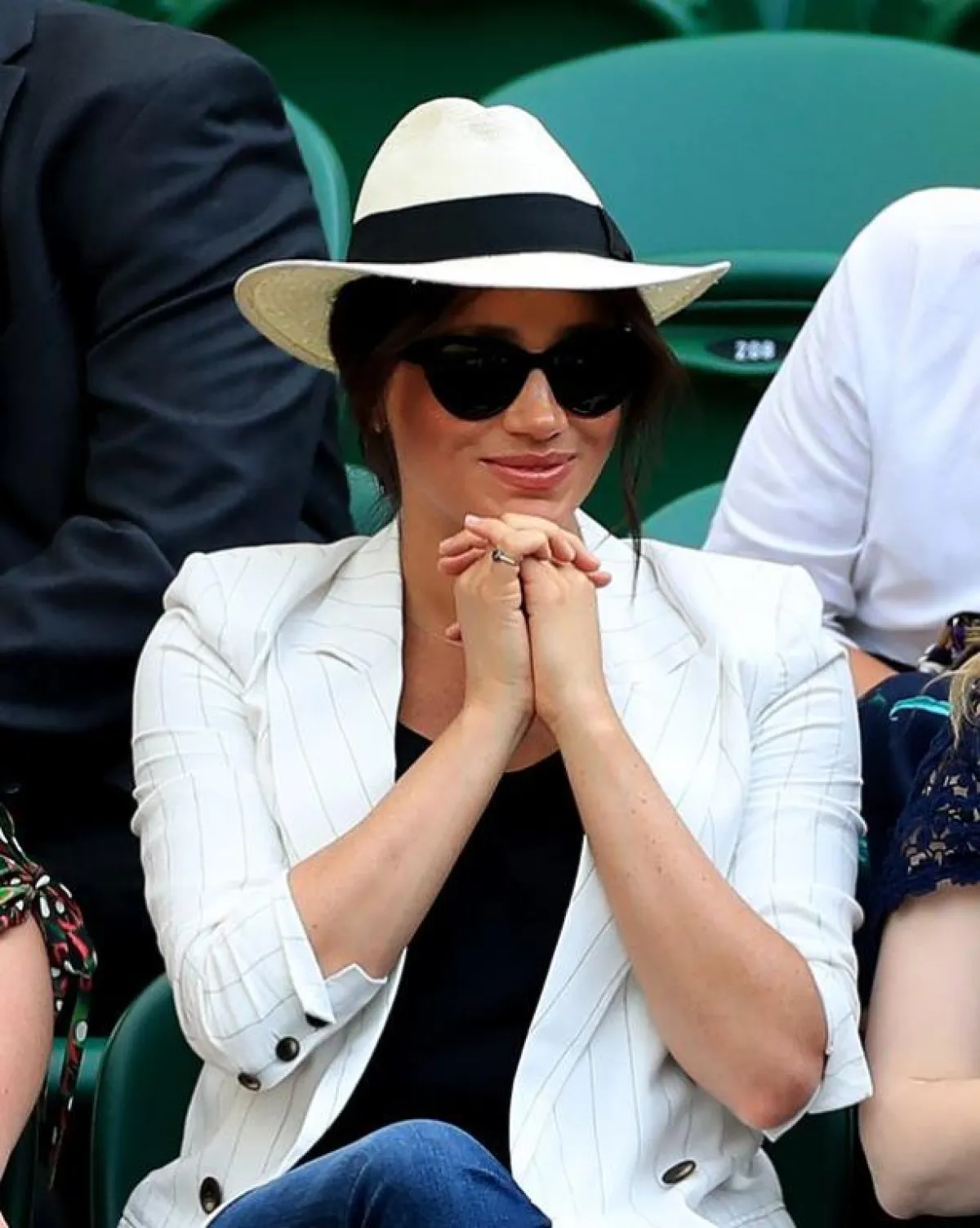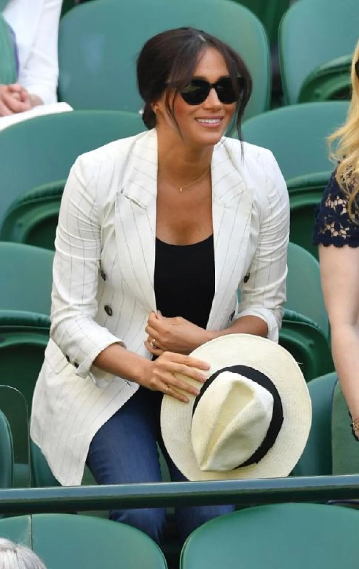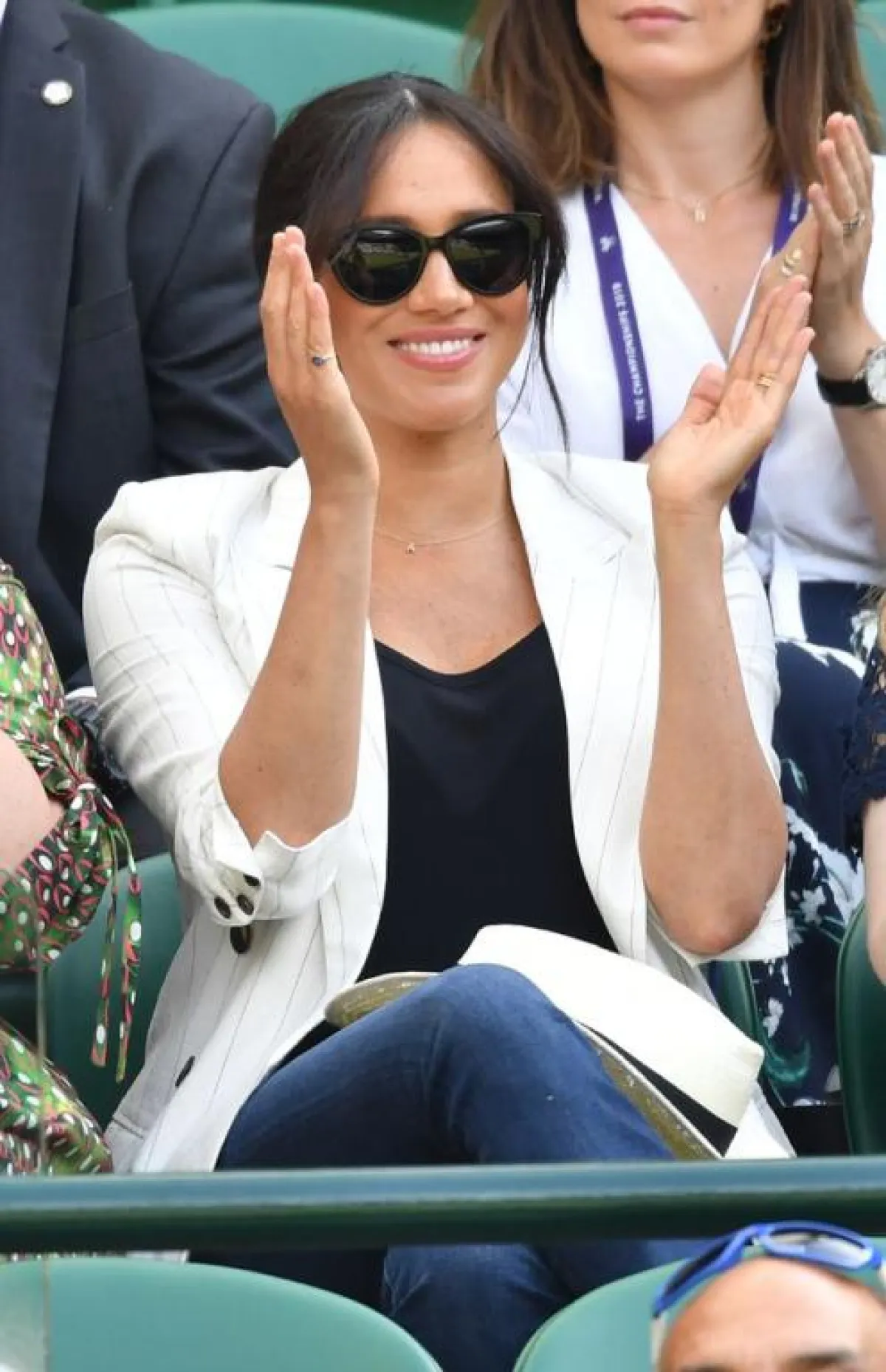 فقد حضرت الدوقة ميغان ماركل إلى ملاعب ويمبلدون، بصحبة صديقتيها المقربتين الجامعيتين ليندسي روث، وجينفييف هيليس؛ التي يشاع إنها عرابة الطفل الملكي «آرتشي» ابن الأمير هاري وميغان.