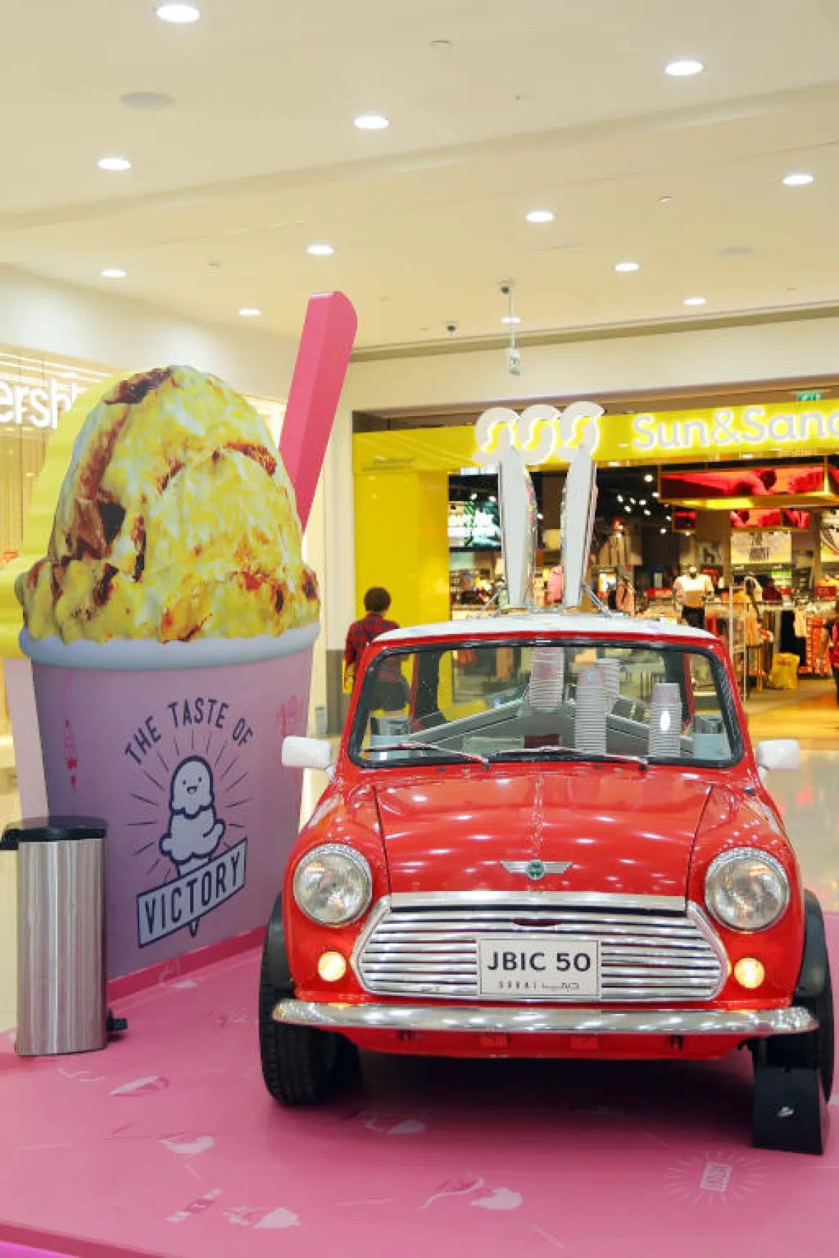 سوف تكون هذه النكهة الجديدة متاحة بشكل مجاني وحصري للمتسوّقين الذين ينفقون 250 درهمًا في المركز خلال فعاليات مهرجان مفاجآت صيف دبي.