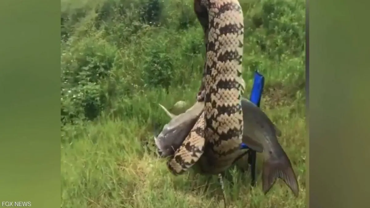 فعندما أخرج الصياد تشيس ماكري «السمكة» التي اصطادها من جدول «لانغام كريك»، في ولاية تكساس، وجد أن هناك مخلوقاً آخر يطالب بها، ليس أي مخلوق؛ إذ كانت أفعى ضخمة قد سبقته إلى السمكة على ما يبدو. ونشر تشيس لقطات فيديو للسمكة التي اصطادها مع «الأفعى العملاقة» العالقة بها على حسابه في موقع «فيسبوك» للتواصل الاجتماعي.