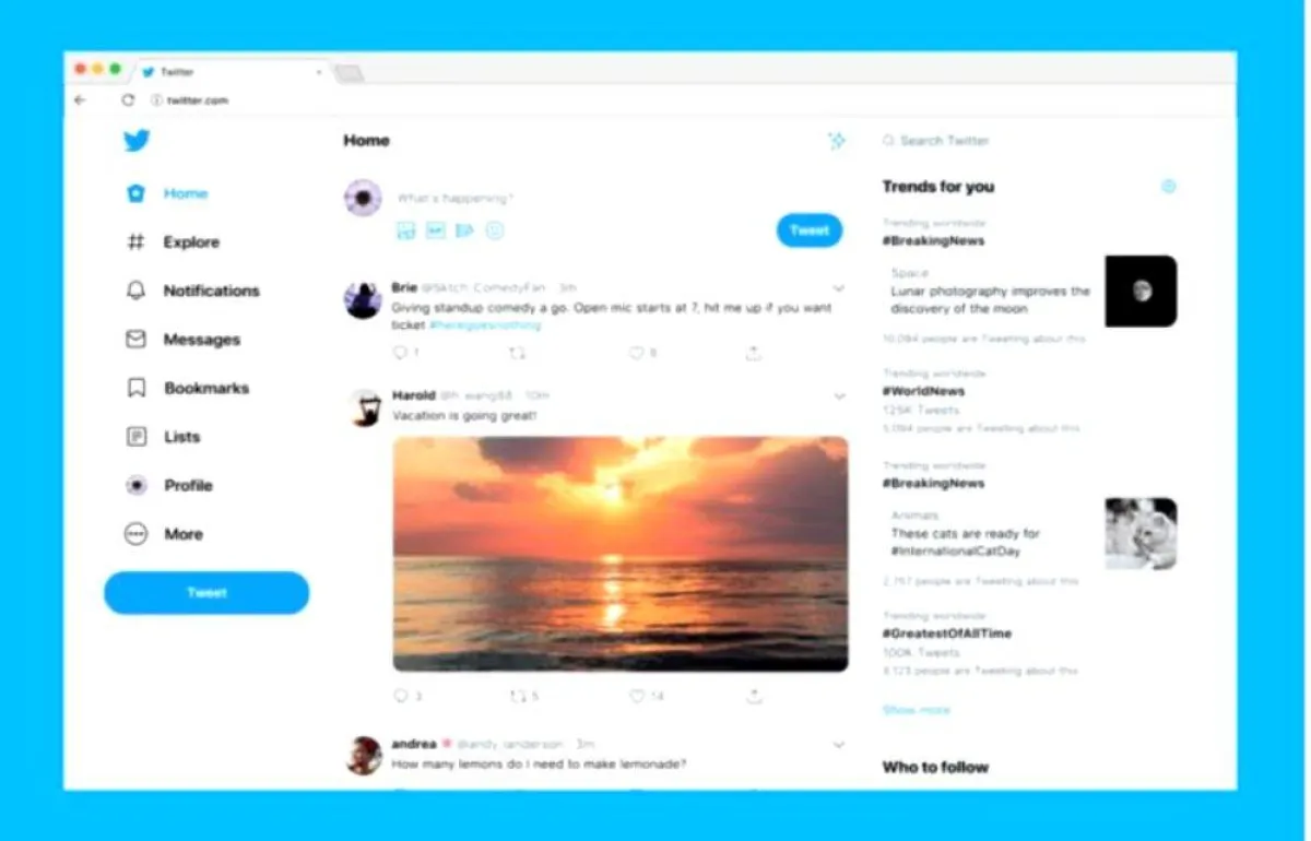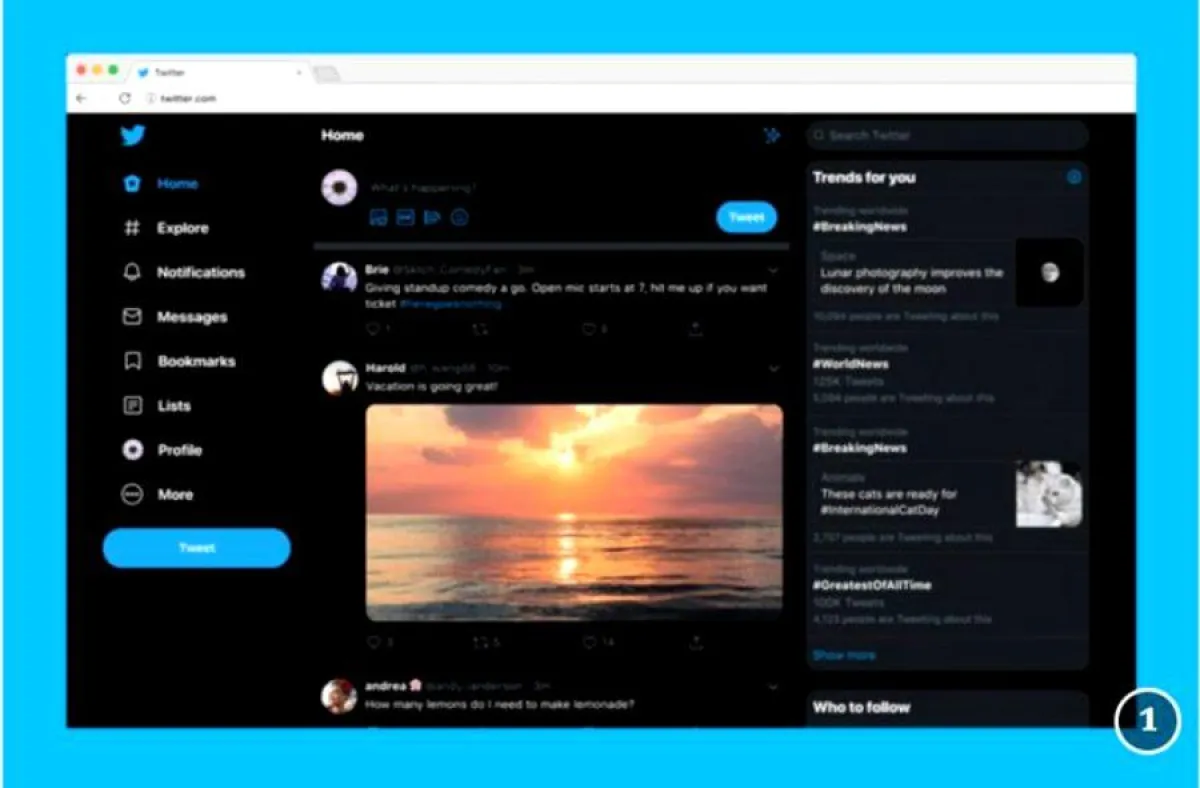 تداولت عددٌ من المواقع التصميم الجديد لموقع التواصل الاجتماعي "تويتر" على الإنترنت الذي يقدم واجهة أبسط بمزايا جديدة، مثل خاصية الاستكشاف، والمفضلة، والوضع الليلي الأسود.