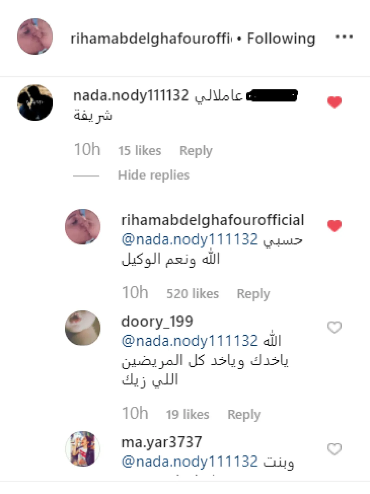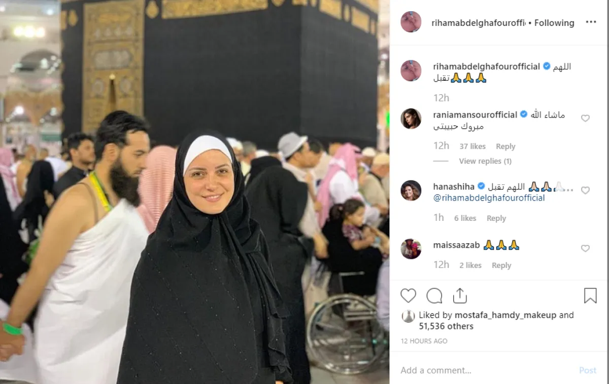 انضمت الفنانة ريهام عبد الغفور إلى قائمة النجمات المصريات اللواتي أدين مناسك العمرة على هامش المشاركة في فعاليات موسم حفلات صيف جدة، ولكنها فوجئت بتعليق مخل من فتاة تتابعها اتهمتها بادعاء الشرف، فما كان من ريهام إلا الدعاء عليها، وتركت مهمة الانتقام لأكثر من 170 معجب تفرغوا لإهانة الفتاة والرد عليها.