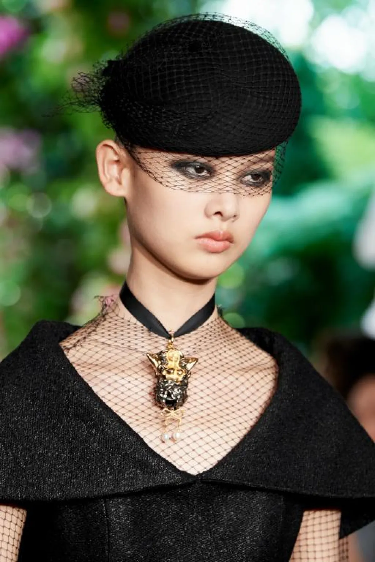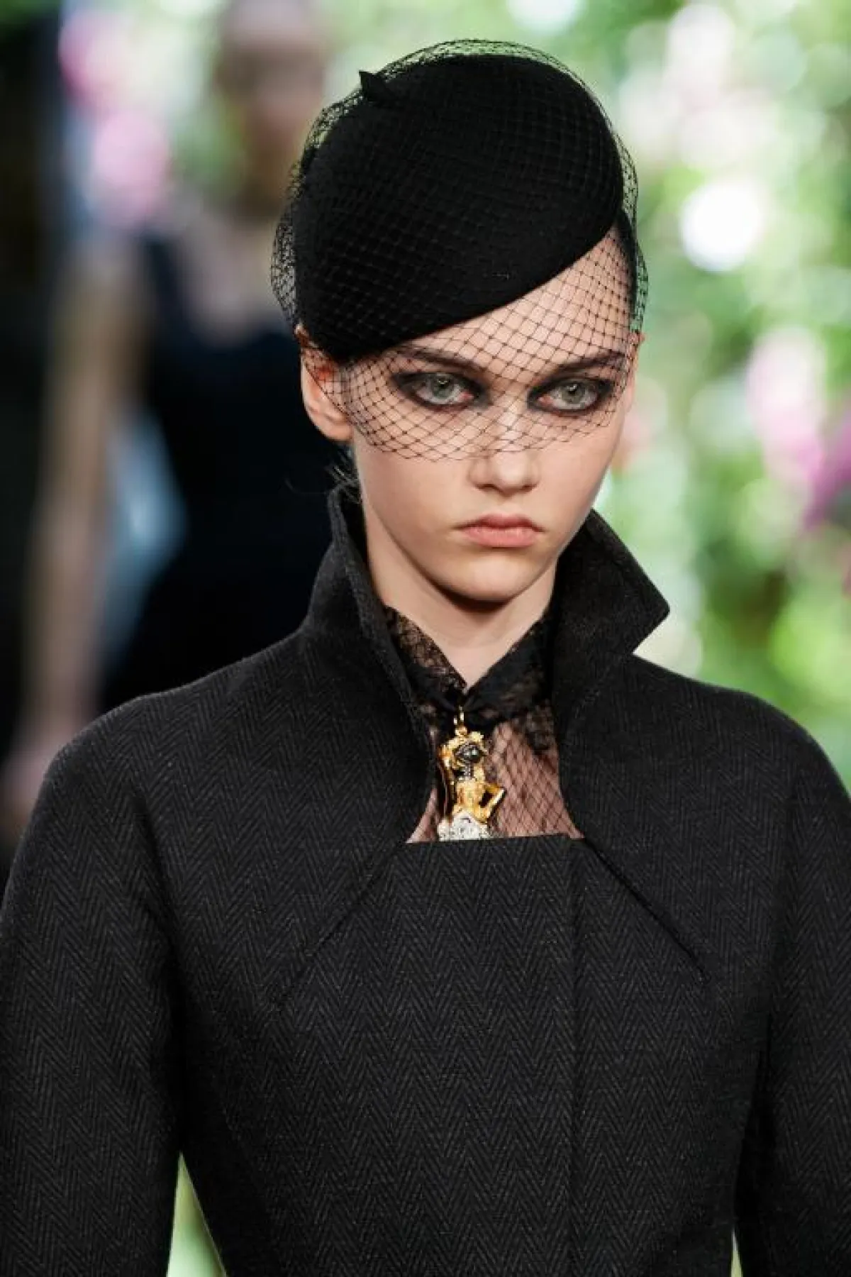 اعتمد فيليبس اللون الأسود بأحلك درجاته لتنفيذ المكياج الدخاني على عيون العارضات، وقد غطّت الظلال كامل الجفن العلوي مع امتداد لافت إلى الحدود الخارجية للعين، ما جعلها تبدو داكنة بما يكفي للاستغناء عن الماسكرا.