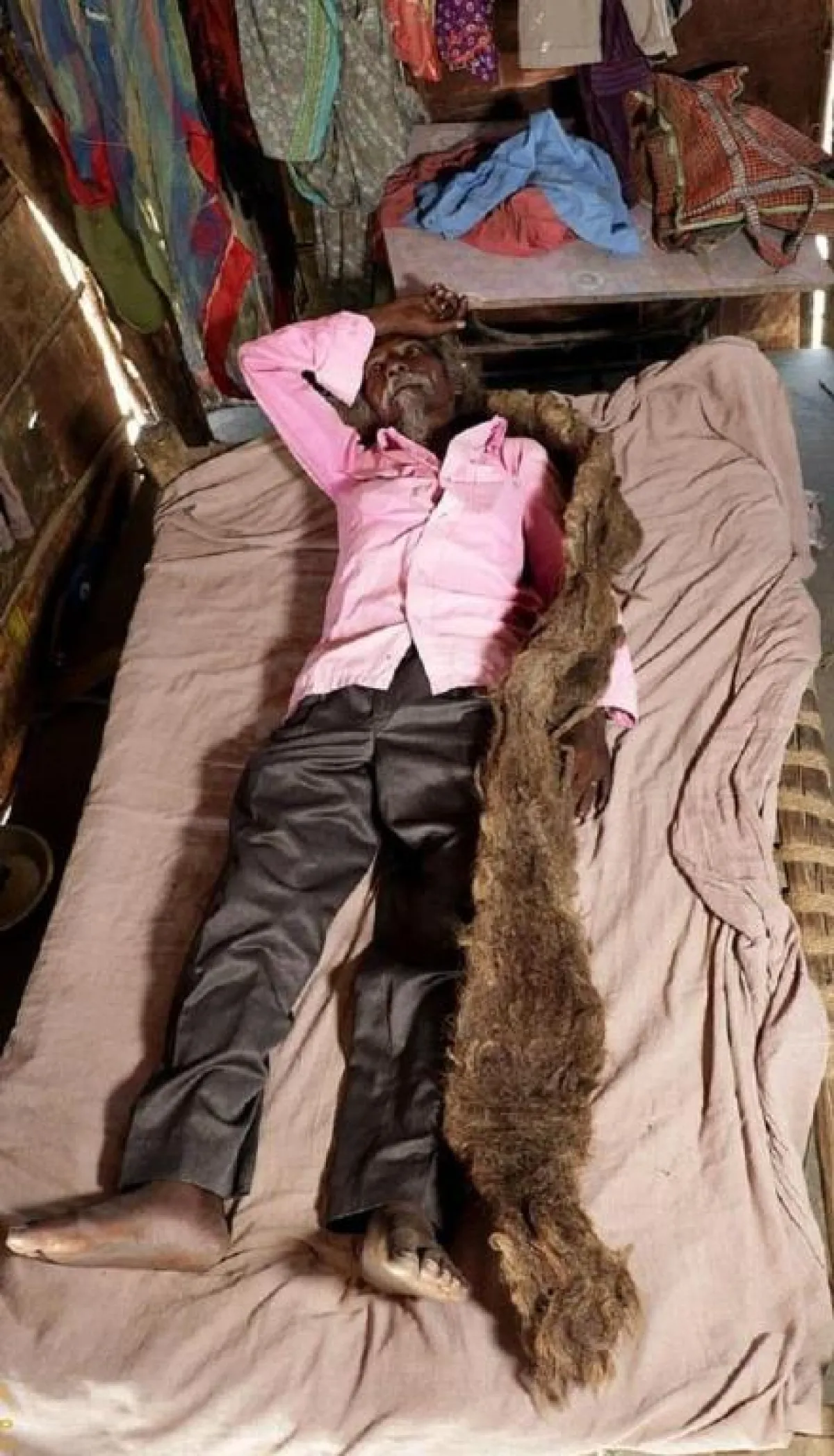 ووفقاً لما نقلته العديد من وسائل الإعلام المختلفة، عن صحيفة الـ«ديلي ميل» البريطانية، فإن «تودو»، البالغ من العمر الآن 63 عاماً، كان قد قطع عهداً على نفسه، قبل 40 عاماً، بألا يقوم بقصّ أو غسل شعره على الإطلاق. وبالفعل الرجل الهندي الذي يعيش في منطقة «مونجر»، بولاية «بيهار» الشرقية، بوعده لنفسه؛ لم يقم بفعل أي من ذلك طوال العقود الأربعة الماضية.