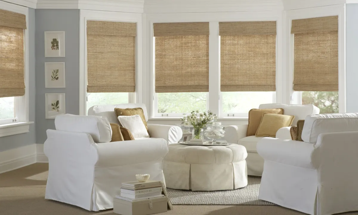 | الستائر الخفيفة تُركَّب في المنازل، التي تمتاز بحضور الجدران الزجاج الكبيرة، وغالبًا ما تكون ذات ألوان حياديَّة.