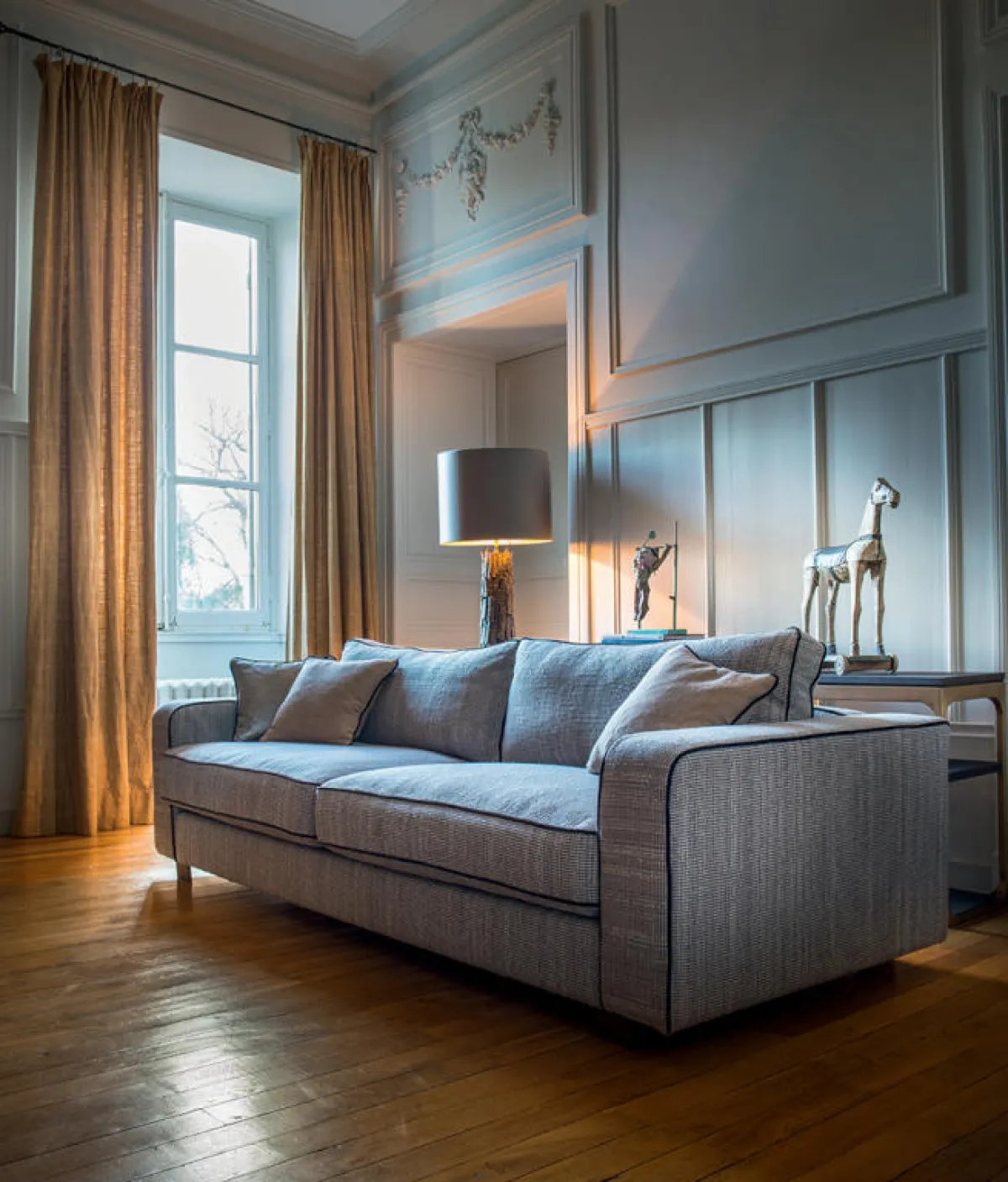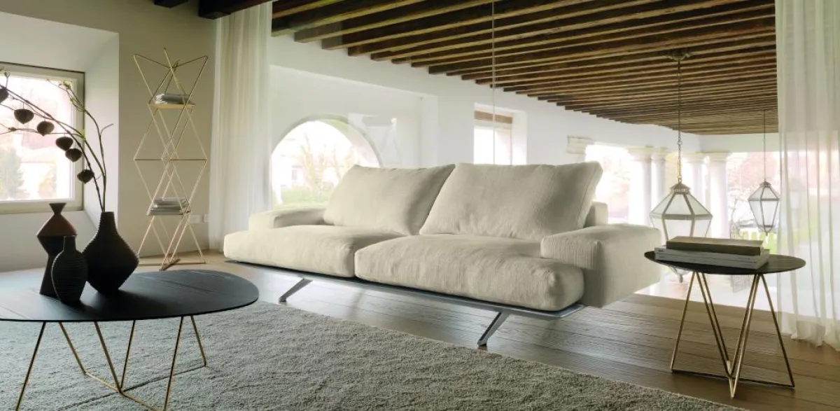 • الحجم: يوازي حجم الأريكة ثلاثة أرباع مساحة الجدار، الذي يقع خلفها. (مثلًا: إذا بلغ عرض الجدار أربعة أمتار، يُفضّل اختيار الصوفا بحجم ثلاثة أمتار). وفي شان طول الأريكة، يجب البعد عن اختيارها مرتفعة، لغرفةٍ ذات سقف منخفض. (مثلًا: في حال كان ارتفاع السقف يبلغ 2.80 مترًا، لا يجب أن يتعدى ارتفاع ظهر الأريكة 90 سنتيمرًا).