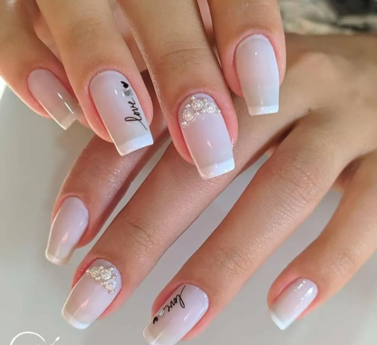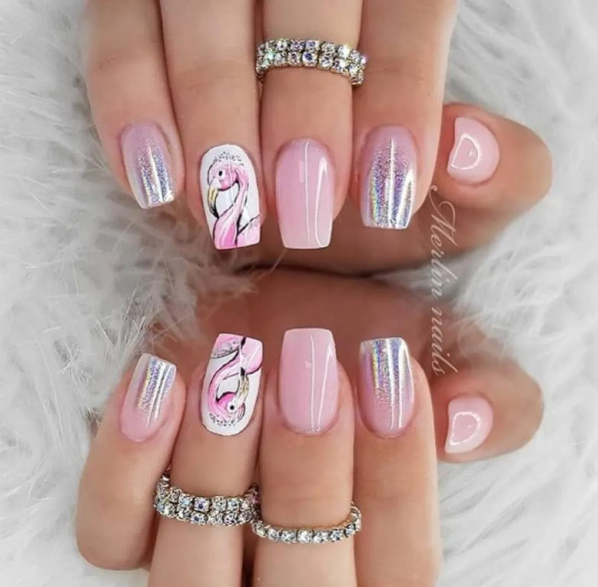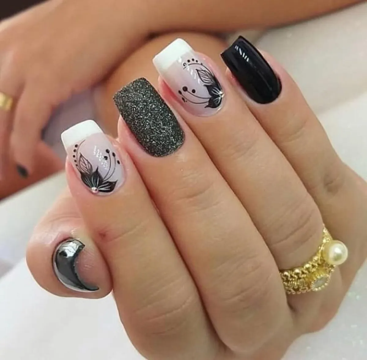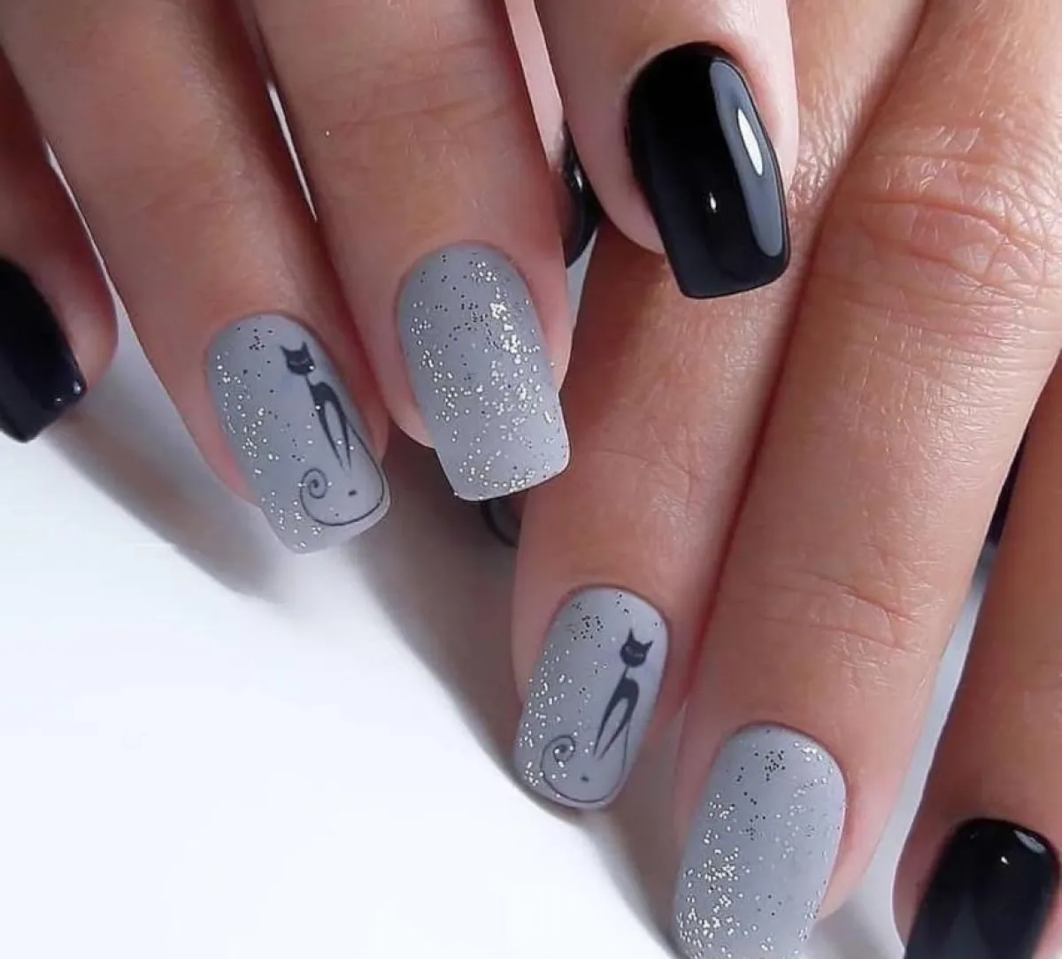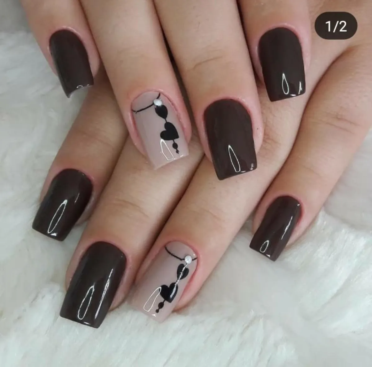إذا كنت لا تميلين الى ألوان المناكير القوية والفاقعة، وتحبين رسومات المناكير بالألوان الناعمة، فلا تترددي في اعتماد رسومات الأظافر بلوني الزهري والرمادي، وطبقي عليهما زخرفة مميزة بالمناكير الأسود. وعند الانتهاء، زيني أظافرك بحبوب الستراس الناعمة.