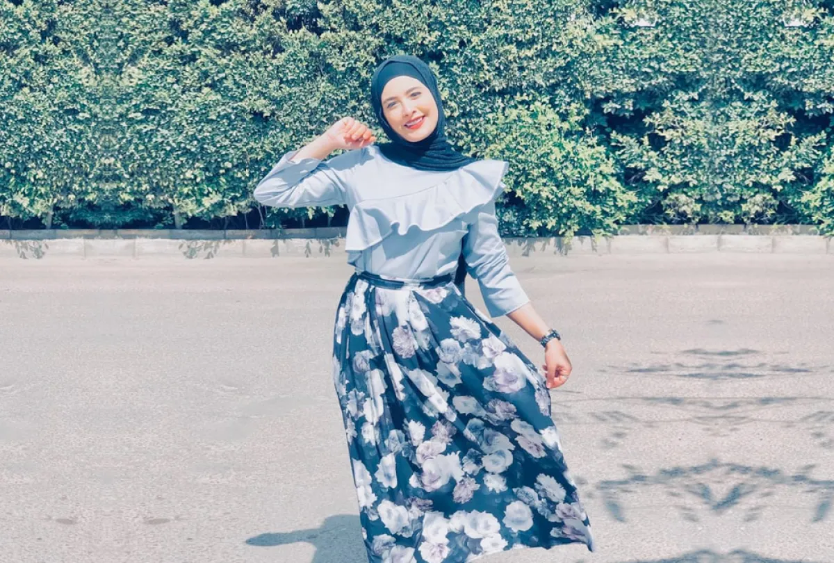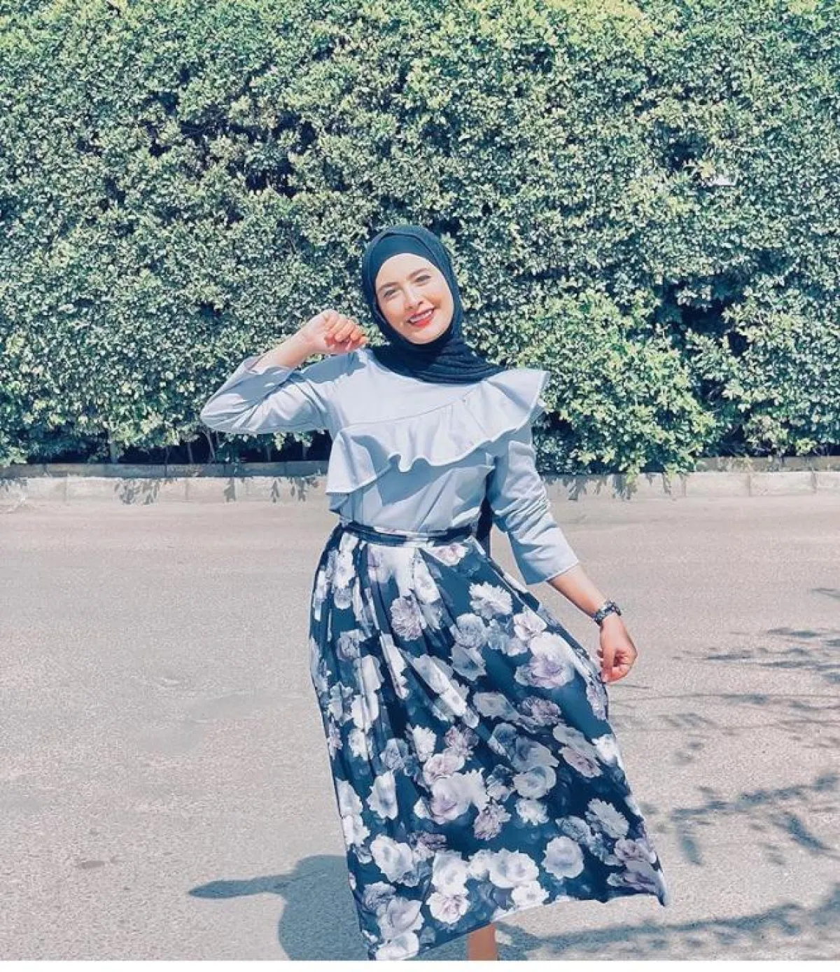 يمكنكِ اخيتار هذا اللوك من نورهان حسن، بالتنورة المعرقة بالورود، مع البلوزة المكشكشة بالورود، وإن كنتِ ممتلئة جدًّا من الجزء العلوي، ننصحكِ بالتخلي عن البلوزات المكشكشة، وارتداء قميص أكثر هدوءًا من دون تفاصيل.