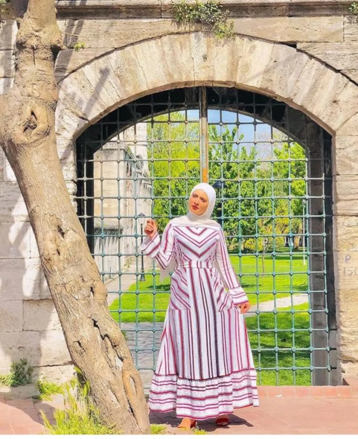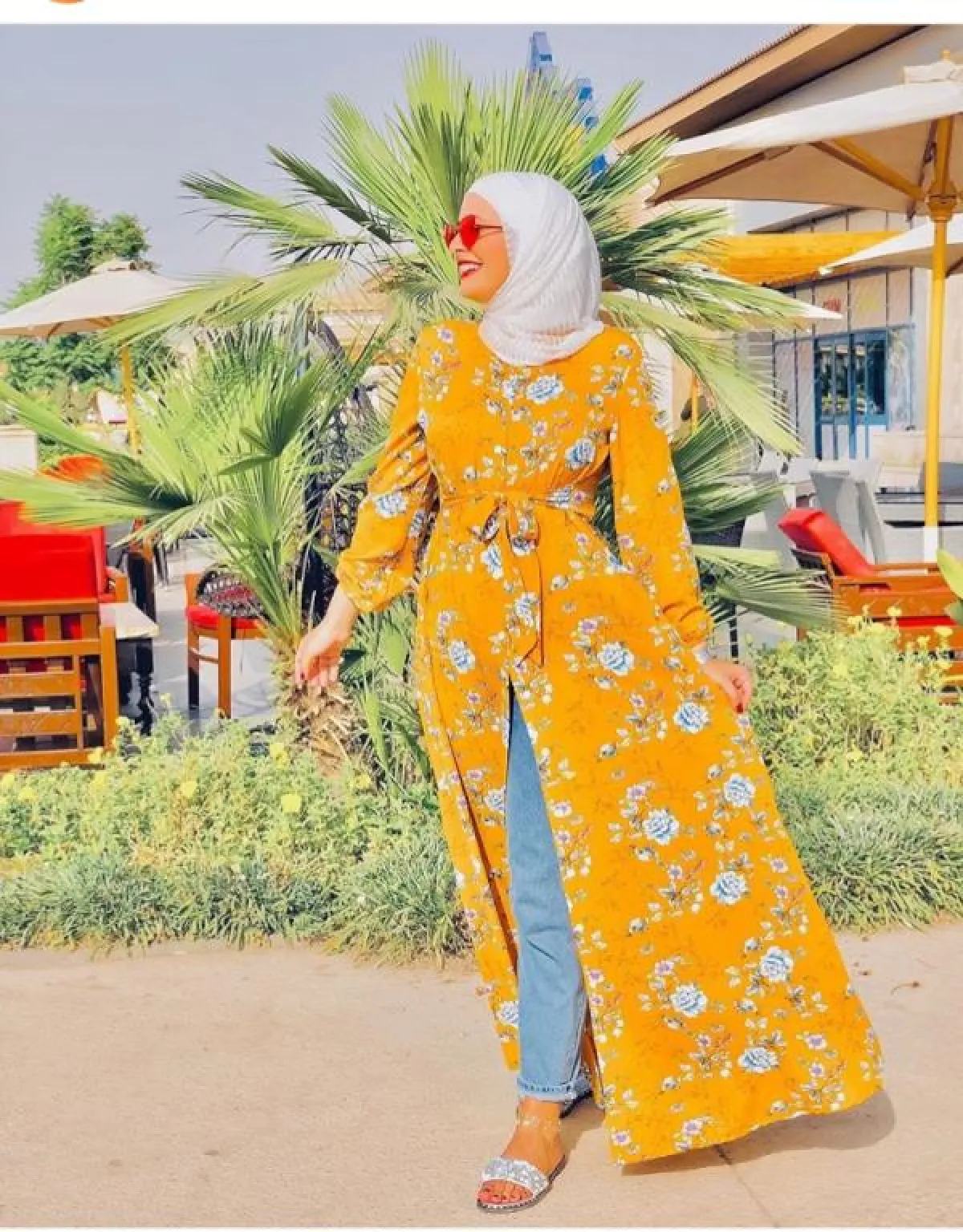 من القطع المهمّة التي ننصح أيّ محجبة أن تكون بخزانتها، هو اختيار الفساتين الصيفية المفتوحة من الأمام، مع تصميمها الضيق نسبيًّا الذي يُبرز جمال خصرها، ومن الأفضل أن تكون بحزام الخصر، وارتداؤها بطريقة مفتوحة مع الجينز سوف يجعل شكل أردافكِ يبدو أنحف، ويبدو الفستان واسعًا وانسيابيًّا كما فعت نورهان حسن.