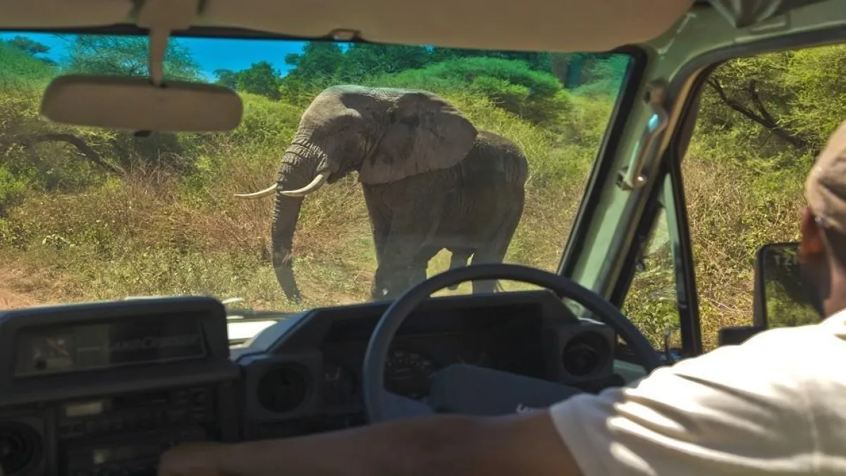 ويبرز الفيديو، الذي صوره السياح، محاولات السائق السير للخلف هرباً من هجمات الفيل الغاضب، وتعليمات السياح له حول المسار الصحيح للابتعاد عن الحيوان.