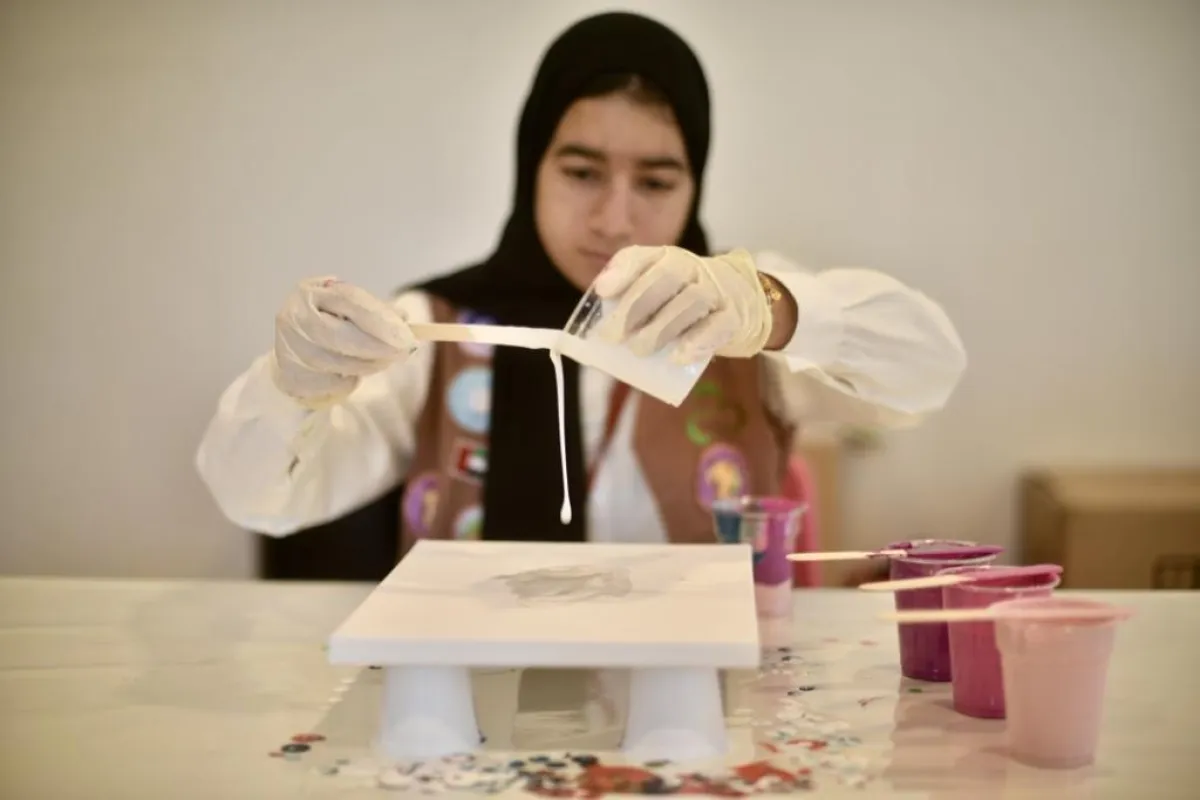 بدورها عرّفت ورشة الرسم المخصصة للمرشدات المتقدمات بتقنيات فنّ الرسم وأسراره، لتمكينهنّ من إبداع أعمال فنية متقنة ليتم عرضها خلال مسابقة جائزة نون للفنون التي ستقام في شهر نوفمبر من العام الجاري تحت شعار "ما بعد المطر".