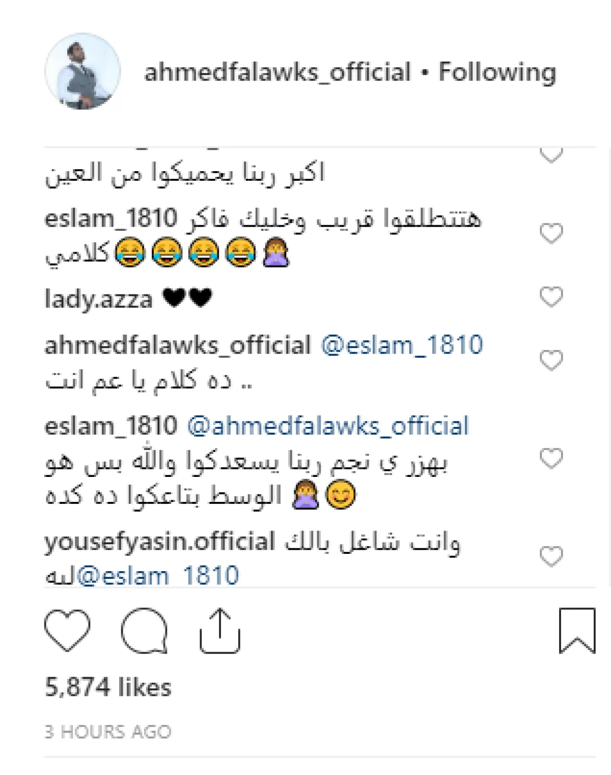 المثير أن الطلاق السريع يؤكد نبوءة أحد متابعي فلوكس ويدعى إسلام الذي علق على صور عقد القران العام الماضي قائلا: هتتطلقوا قريب وخليك فاكر كلامي، ورد عليه فلوكس سريعا: ده كلام يا عم انت، وقال إسلام: بهزر ي نجم ربنا يسعدكوا والله بس هو الوسط بتاعكوا ده كده ، وعقب أحمد قائلا: الوسط بتاعنا زي اي مجال فيه الوحش و فيه الكويس .. ادعلنا انت بس و رينا يكرمك و يكرمنا يا رب و يباركلك و يباركلنا انشاء الله.