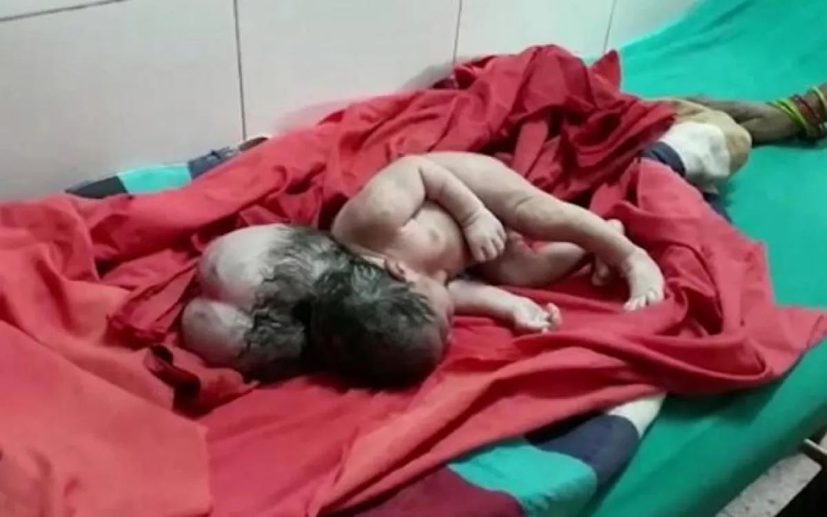 وأصيب أقارب المرأة الهندية والأطباء بالذهول عندما أنجبت طفلتها بـ(ثلاثة رؤوس)، حيث كان للطفلة نتوءان كبيران يتشكلان من خلف جمجمتها، وهي عيوبٌ خلقيةٌ نادرةٌ تعرف باسم (القيلة الدماغية)، وأحياناً يطلق عليها اسم (القحف المشقوق) (encephaloceles).